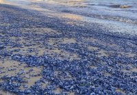 Эти гидрозои родственны медузам, но формально к ним не относятся. Их плоское овальное тело ярко-синего цвета украшает жесткий «парус», который помогает дрейфовать по морской поверхности под воздействием ветра.