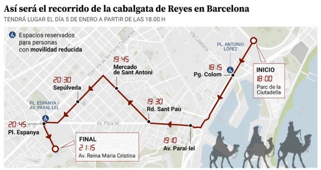 По традиции, Короли прибудут по морю на борту судна «Pailebot Santa Eulàlia» примерно в 15.30. Как только они высадятся на берег, мэр города Жауме Кольбони поприветствует их, и все вместе они отправятся на площадь Портал де ла Пау, где состоится церемония приветствия.