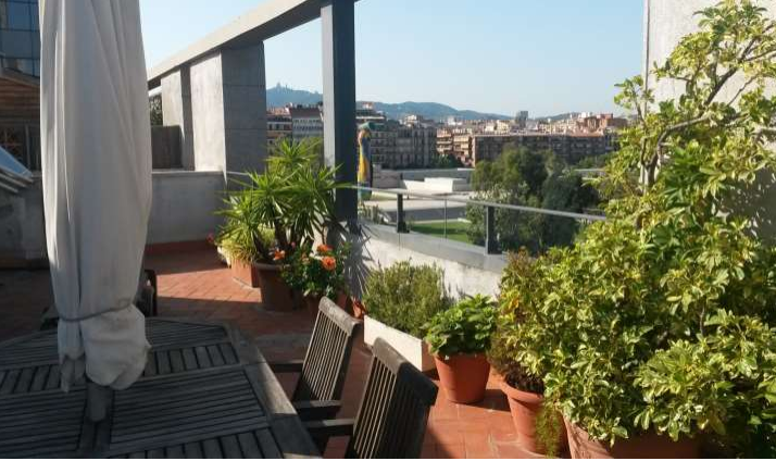 Квартира расположена на площади Испании, на верхнем (последнем) этаже,имеет террасу 110 м2, с которой открывается великолепный вид на гору Монжуик и знаменитое здание "Арена" (торговый комплекс). Следует отметить, что фактическая площадь квартиры 120 м2, в регистре указано 78 м2 (не обновляется), что является фактической площадью отображения плана.