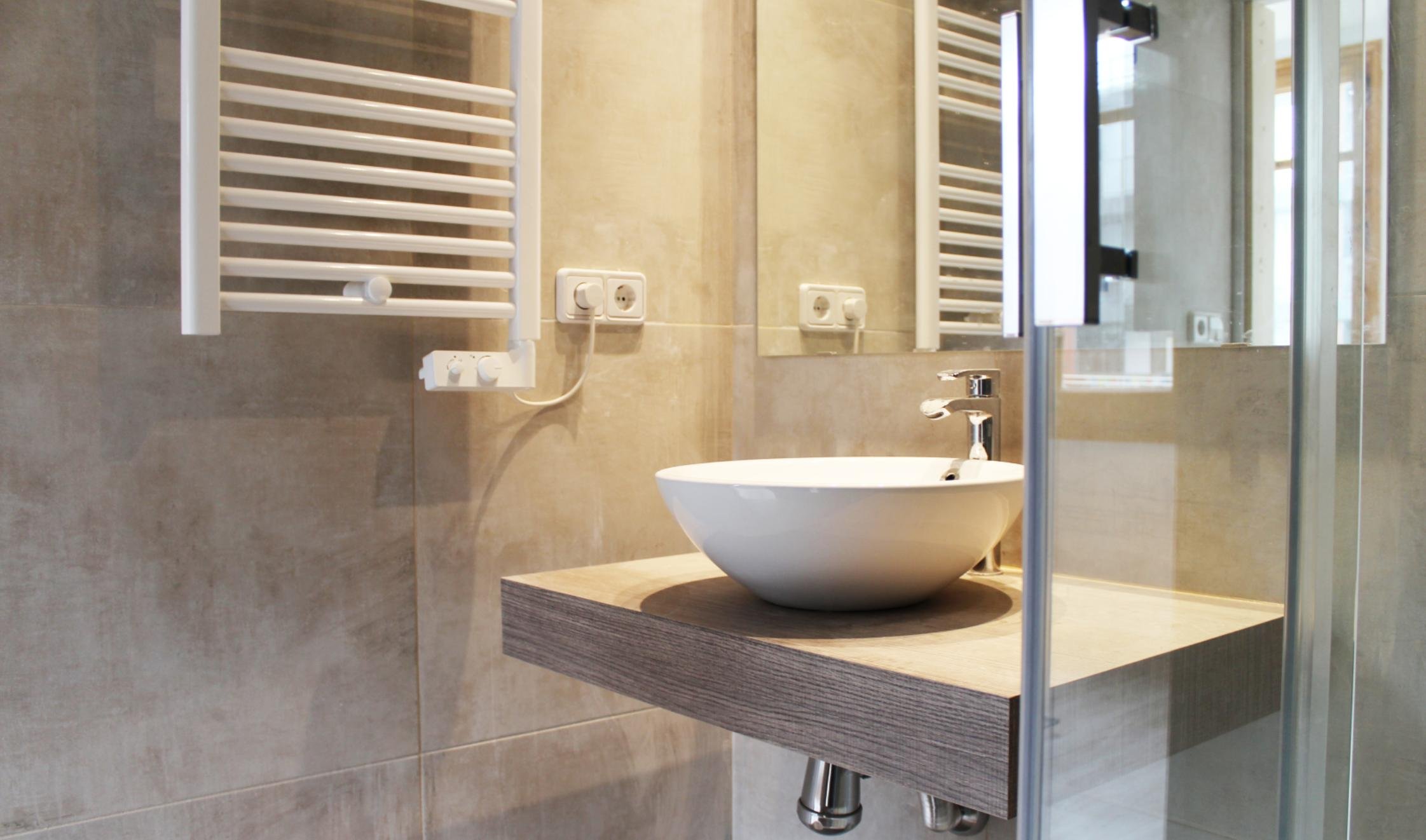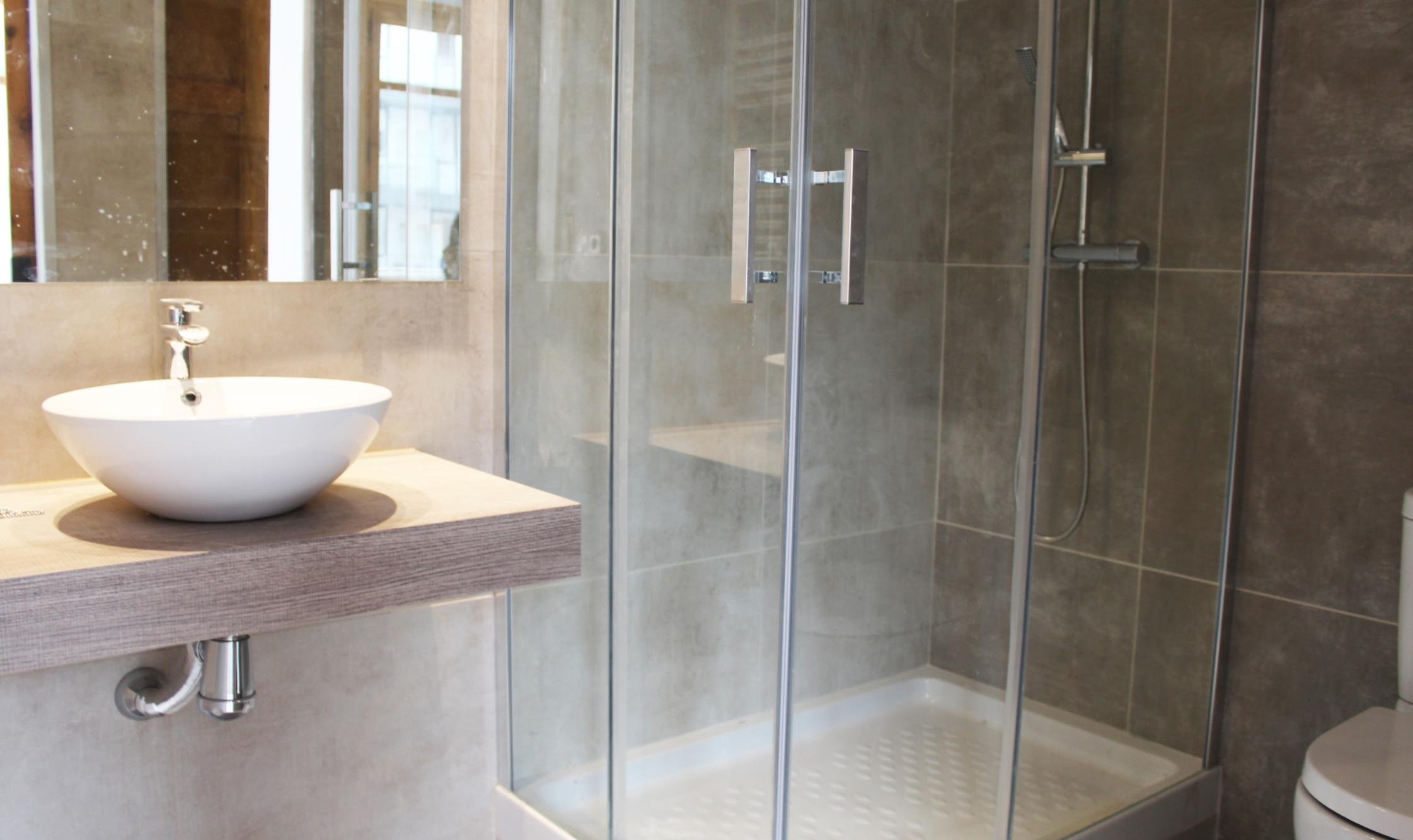 · Стильная ванная комната с душевой кабиной