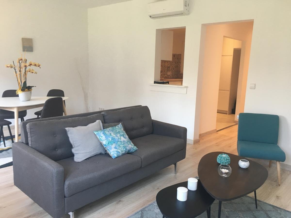 Квартира новая и уютная, с отделкой и полностью оборудованной кухней и ванной комнатой, отоплением и кондиционером. В здание есть лифт.