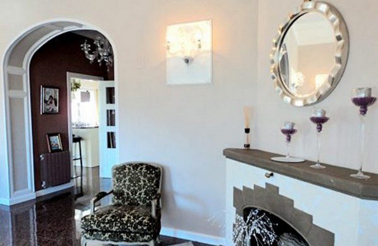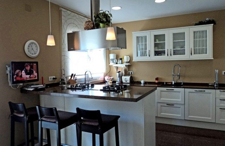 Дом имеет два выхода, две кухни и гардеробную комнату. Две полные ванные комнаты (с ванными), одна с душевой кабиной и гостевой санузел. Кухня около 30 метров с островом и местом для завтраков. рядом с кухней отдельное техническое помещение. 5 спален, назначение каждой из которых можно поменять согласно вкусам нового хозяина. На первом этаже полы из гранита,на втором и третье парке из благородного дуба.