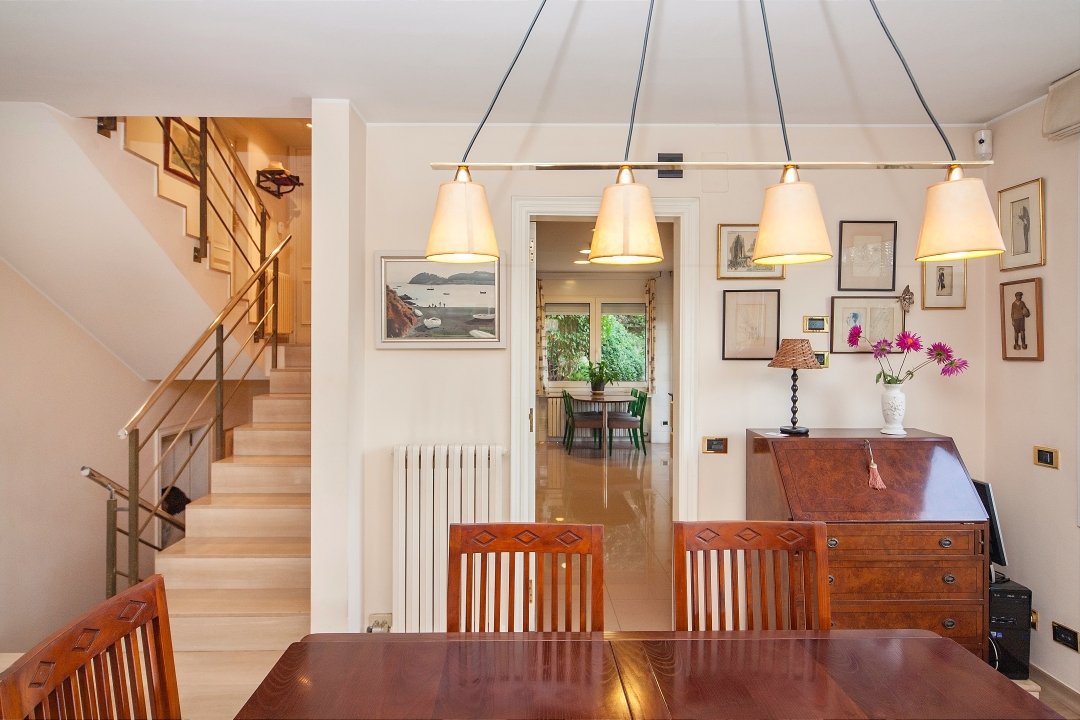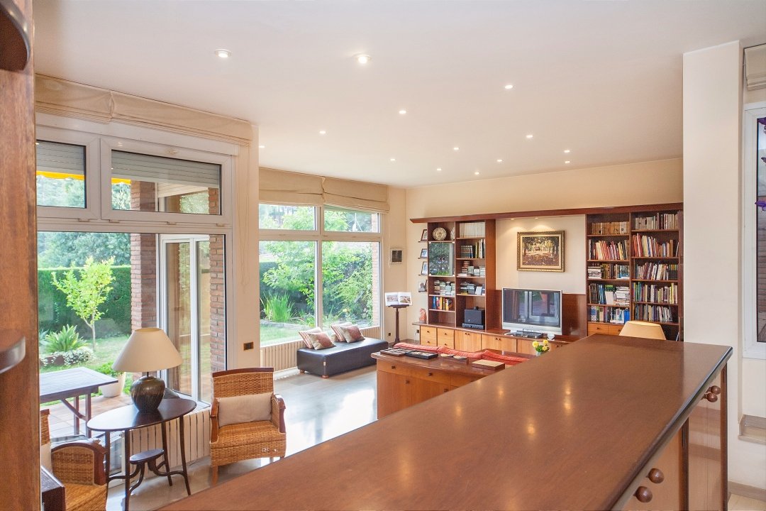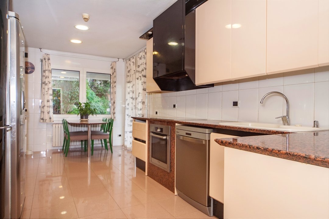В доме имеется большая и светлая гостиная-столовая с мраморным полом бежевого цвета и двумя уровнями: один для столовой, а другой для гостиной. Современная американская кухня находится в очень хорошем состоянии и дополнена служебной комнатой, служащей также и для стирки и глажения.