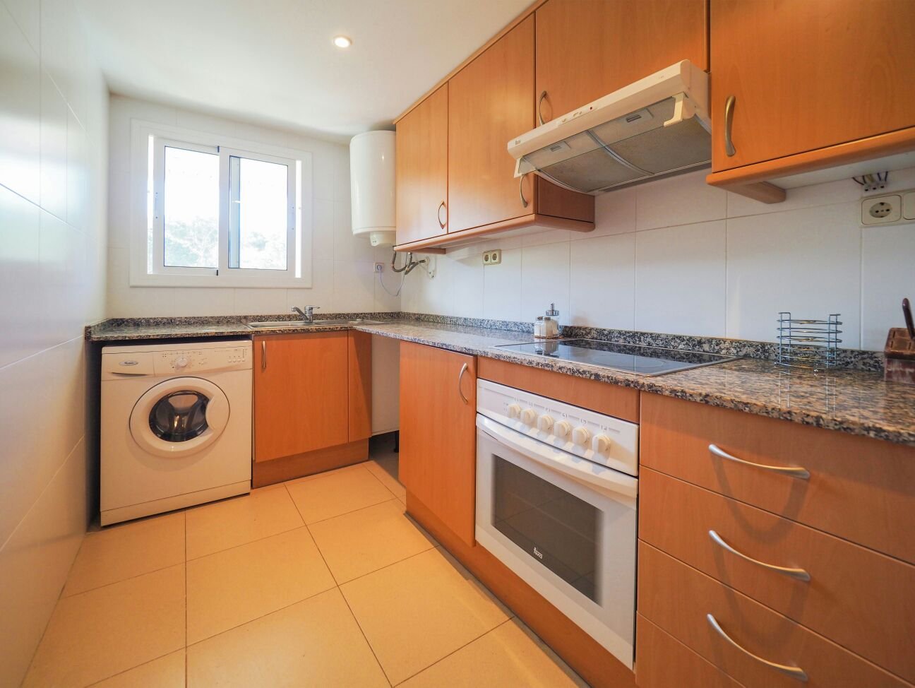 Красивая квартира с 3-мя спальнями, салон, 2 террасы, 2 ванные комнаты,полностью оборудованная кухня, стиральная машина, сушильная машина, микроволновая печь, посудомоечная машина, вайфай, коммунальная зона с бассейном, 300 м от моря в спокойном семейном месте с парковкой.