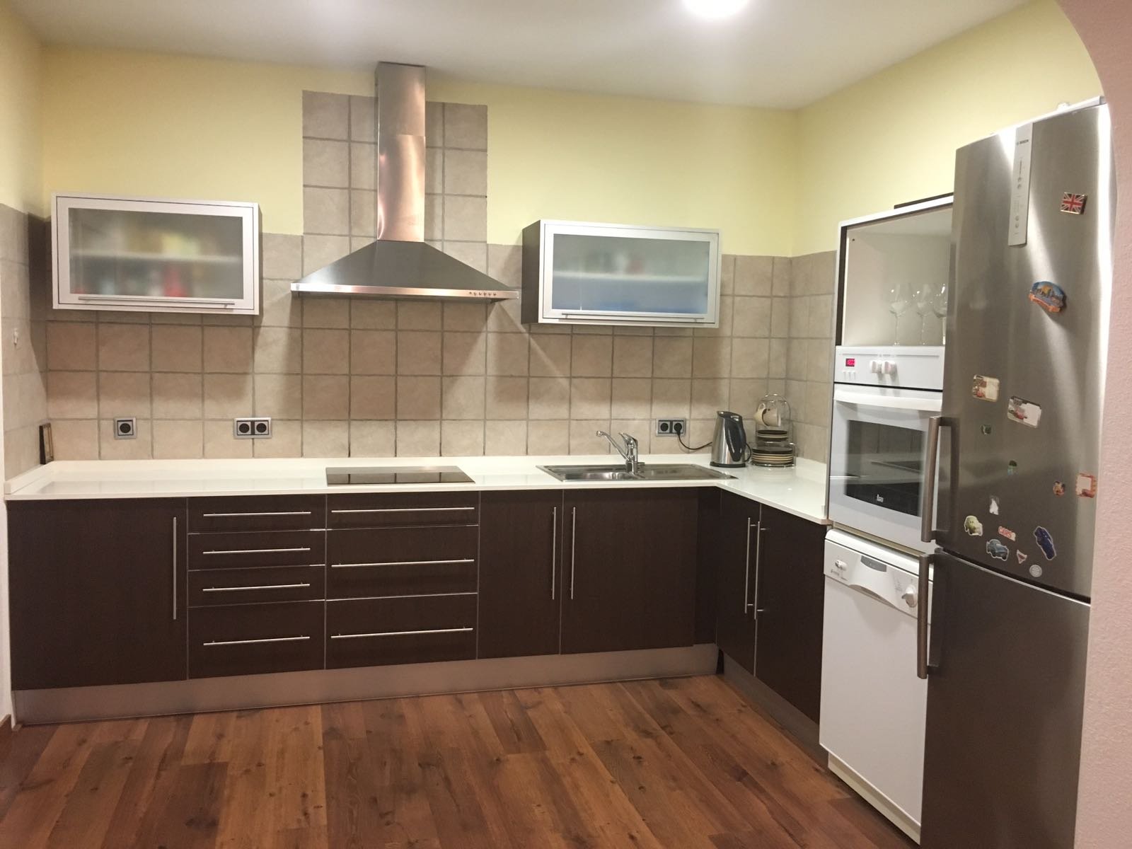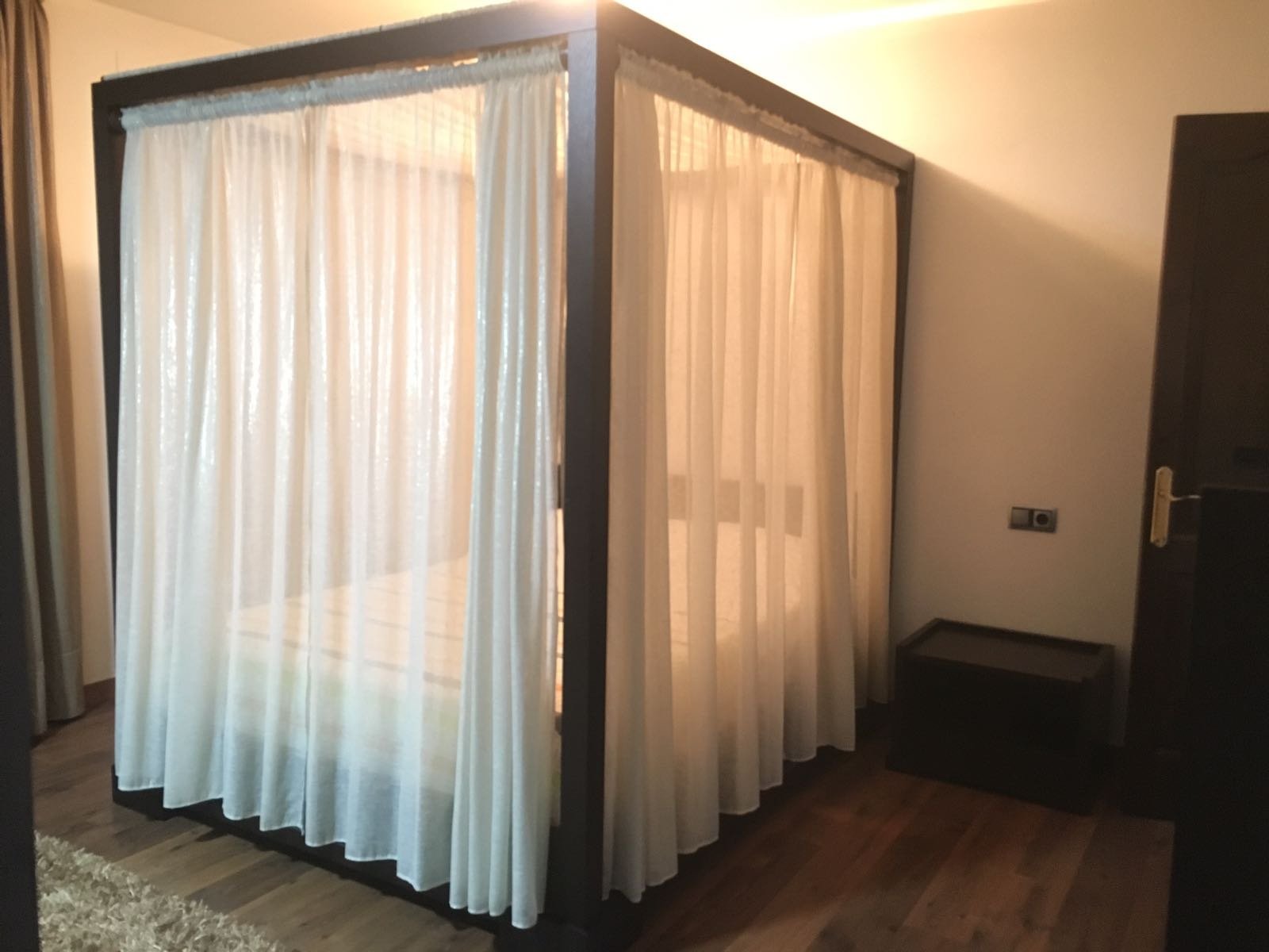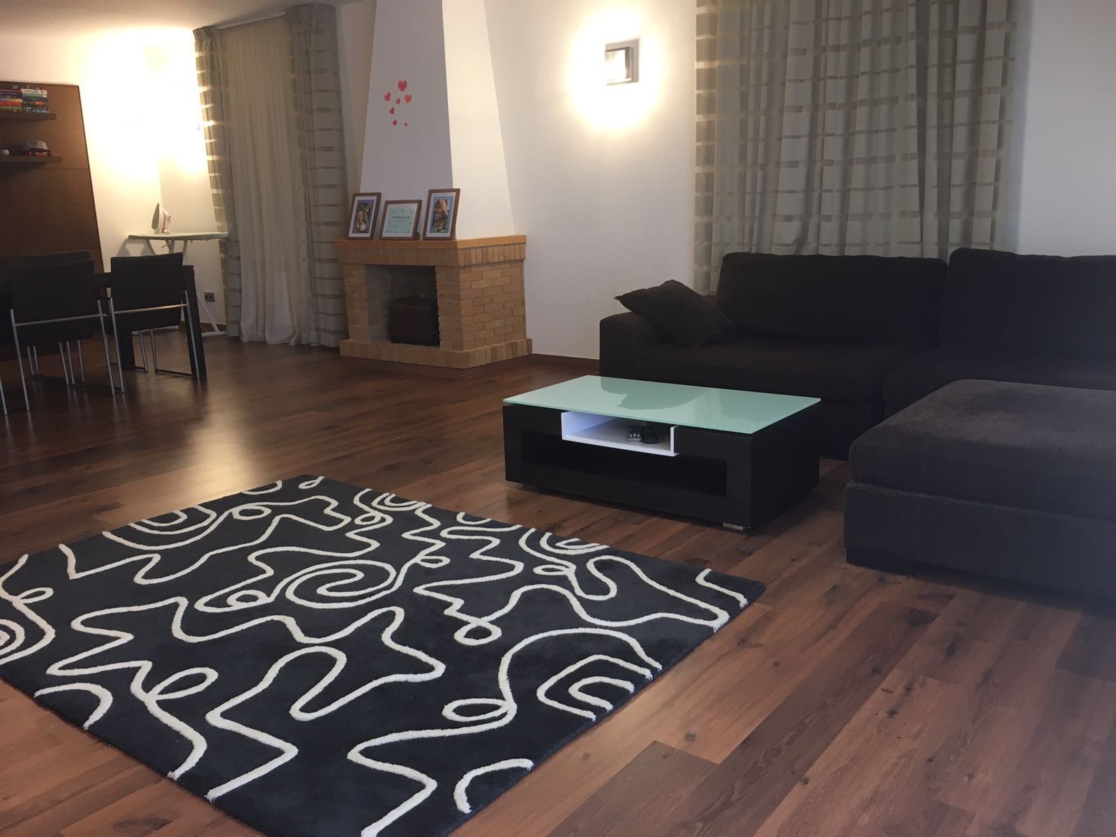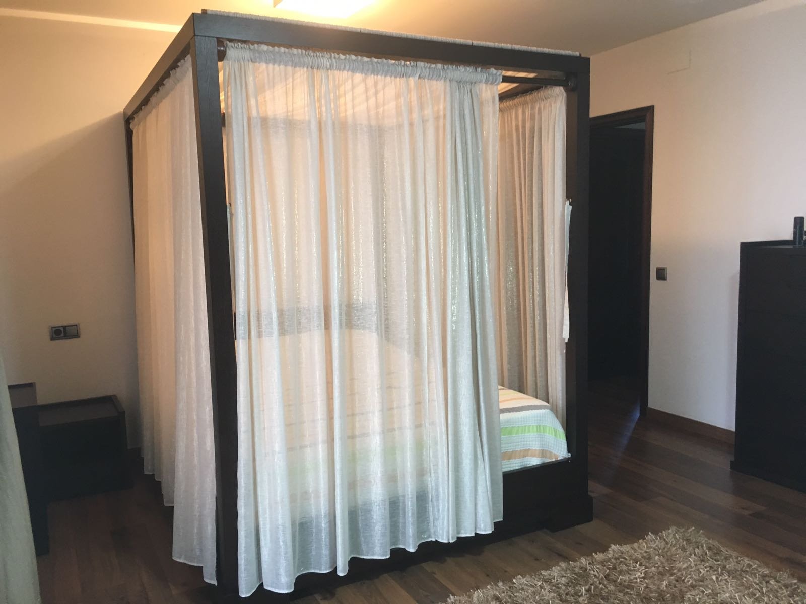 Паркетные полы, все комнаты меблированные, последнего поколения. Кондиционирование воздуха. Встроенные шкафы. Кладовая. Терраса. Гараж на 2 машины, автоматическая дверь, видео, домофон. Парковка. Бассейн. Сад