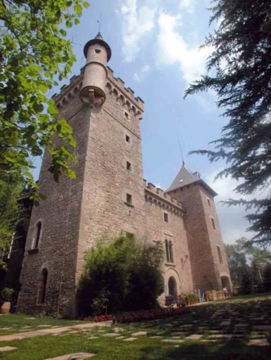 Замок выглядит как сказочный романтический дворец с зубчатыми стенами, высокими башнями и остроконечными крышами. Расположен рядом с Барселоной.