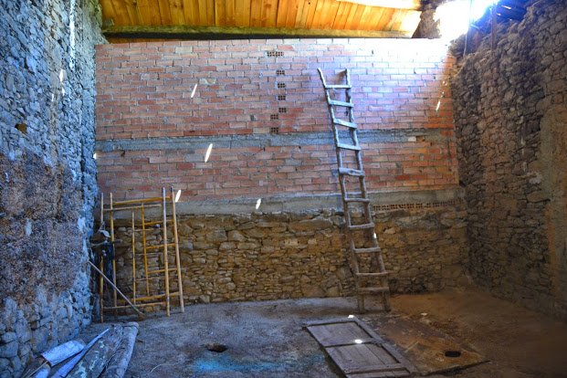 Каменный деревенский дом. Требует полного восстановления, кроме крыши – она отремонтирована недавно.