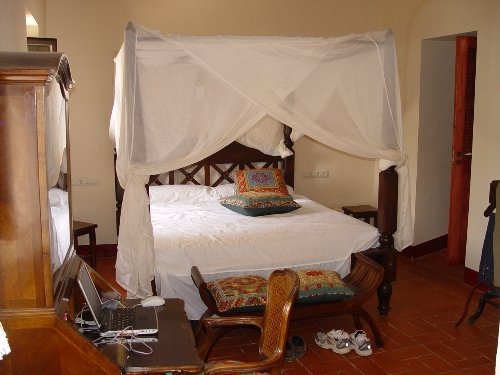 Есть ещё теплица площадью 200 кв.м. с растениями высотой в 8 метров, сад площадью 2500 кв.м. и бассейн.