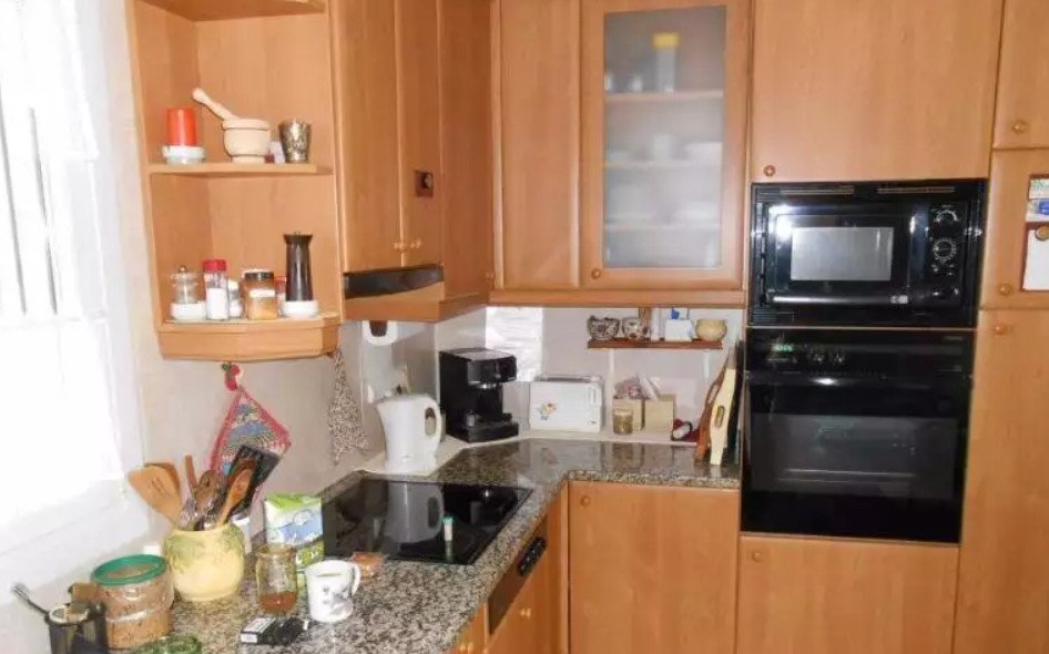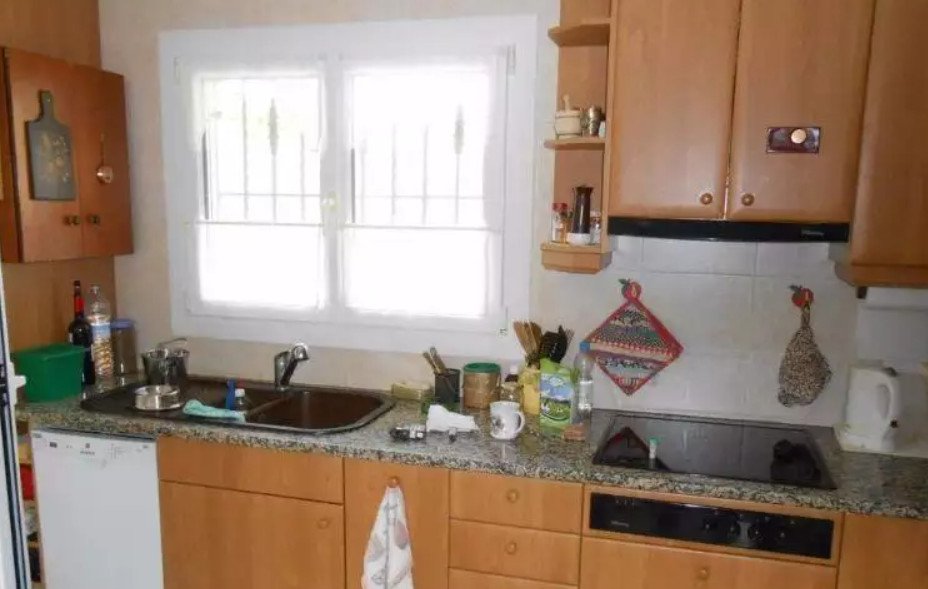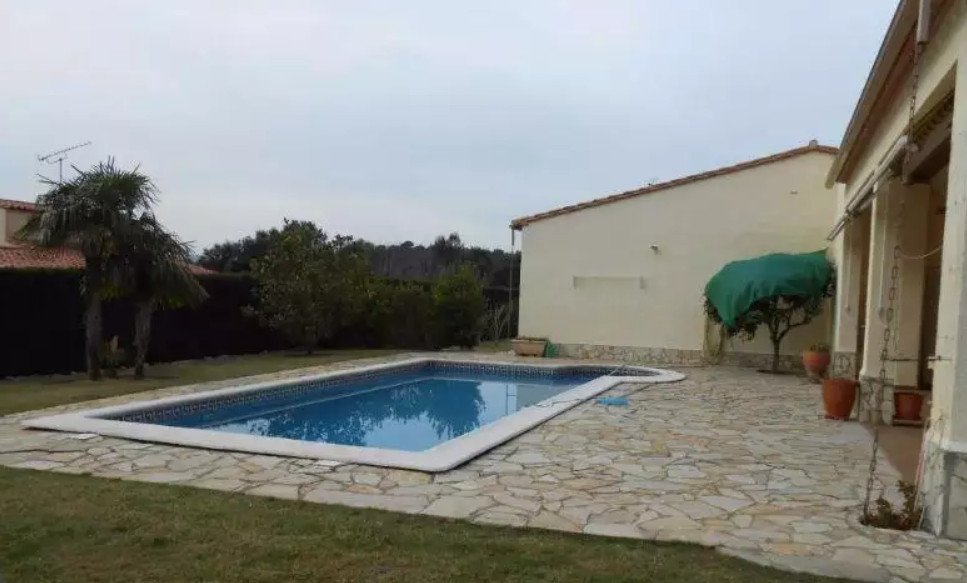 В доме 4 спальни, 3 ванные комнаты, кухня, гостиная с камином и выходом в сад и к бассейну.