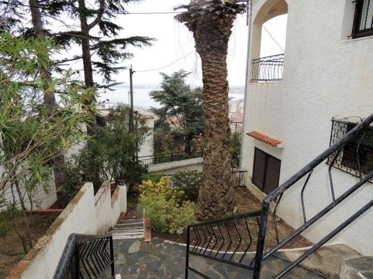 Дом общей площадью 110 м2 и участком 417 м2. Он состоит из двух независимых жилых помещения. Из любого уровня дома открывается прекрасный вид на море.