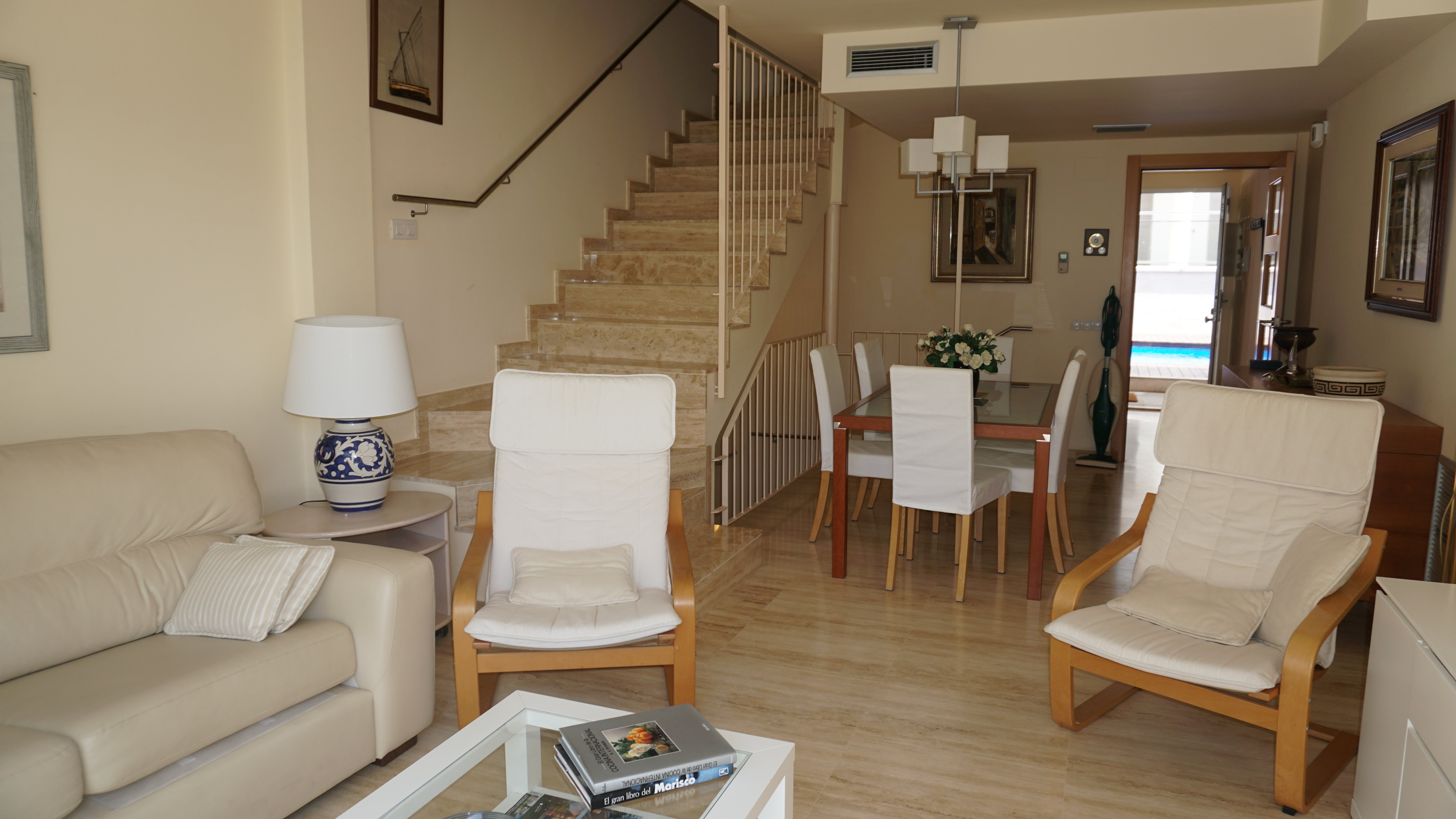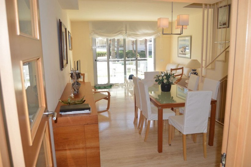 Таунхаус, расположен рядом с пристанью Порт д'Аро в 200 м. от пляжа и в 300 м от торгово-развлекательного центра. Фантастические виды на причалы порта. Площадь таунхауса 130м2 и он имеет 2 этажа. Кухня, столовая, гостиная, уборная и терраса на первом этаже.