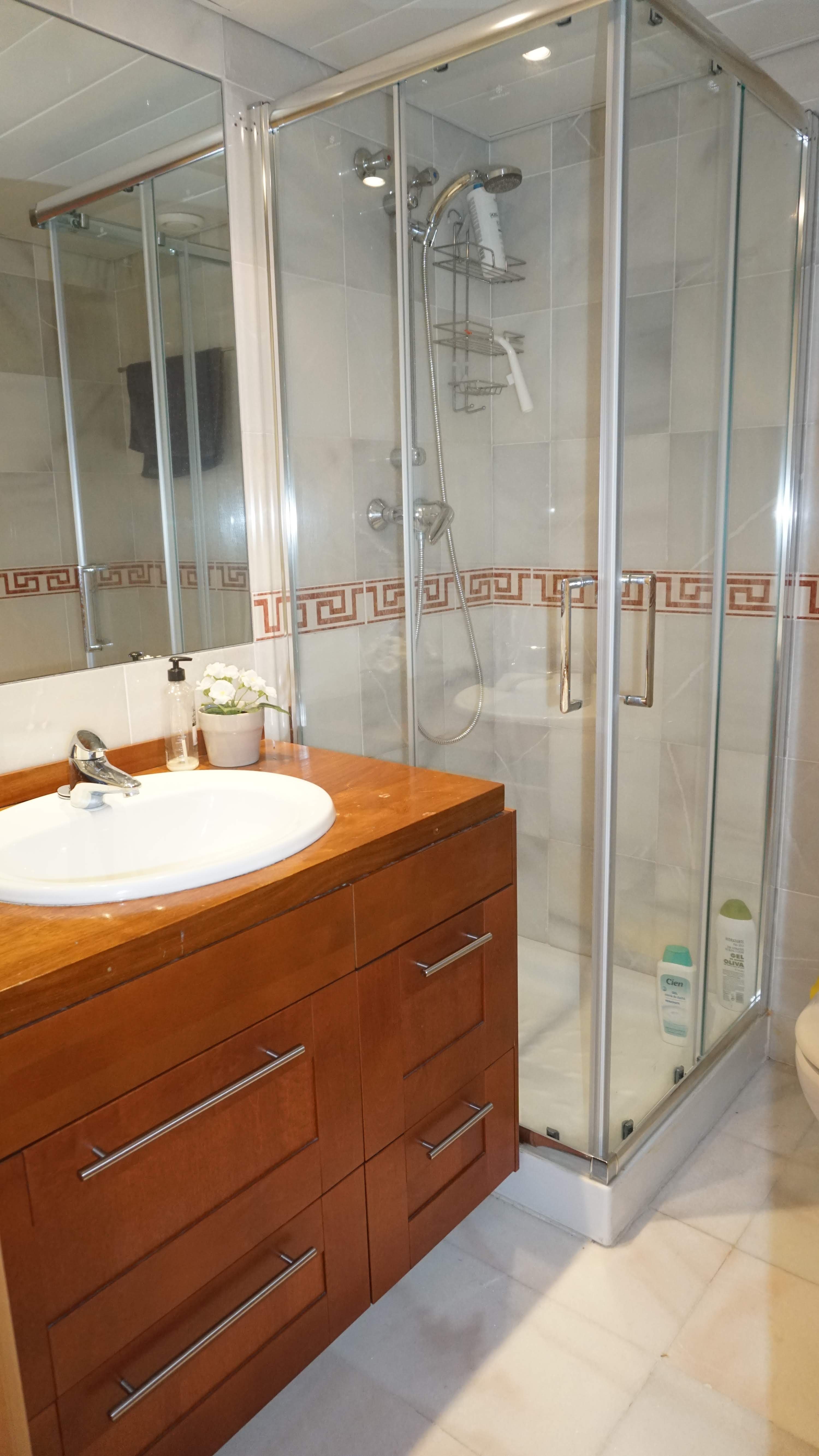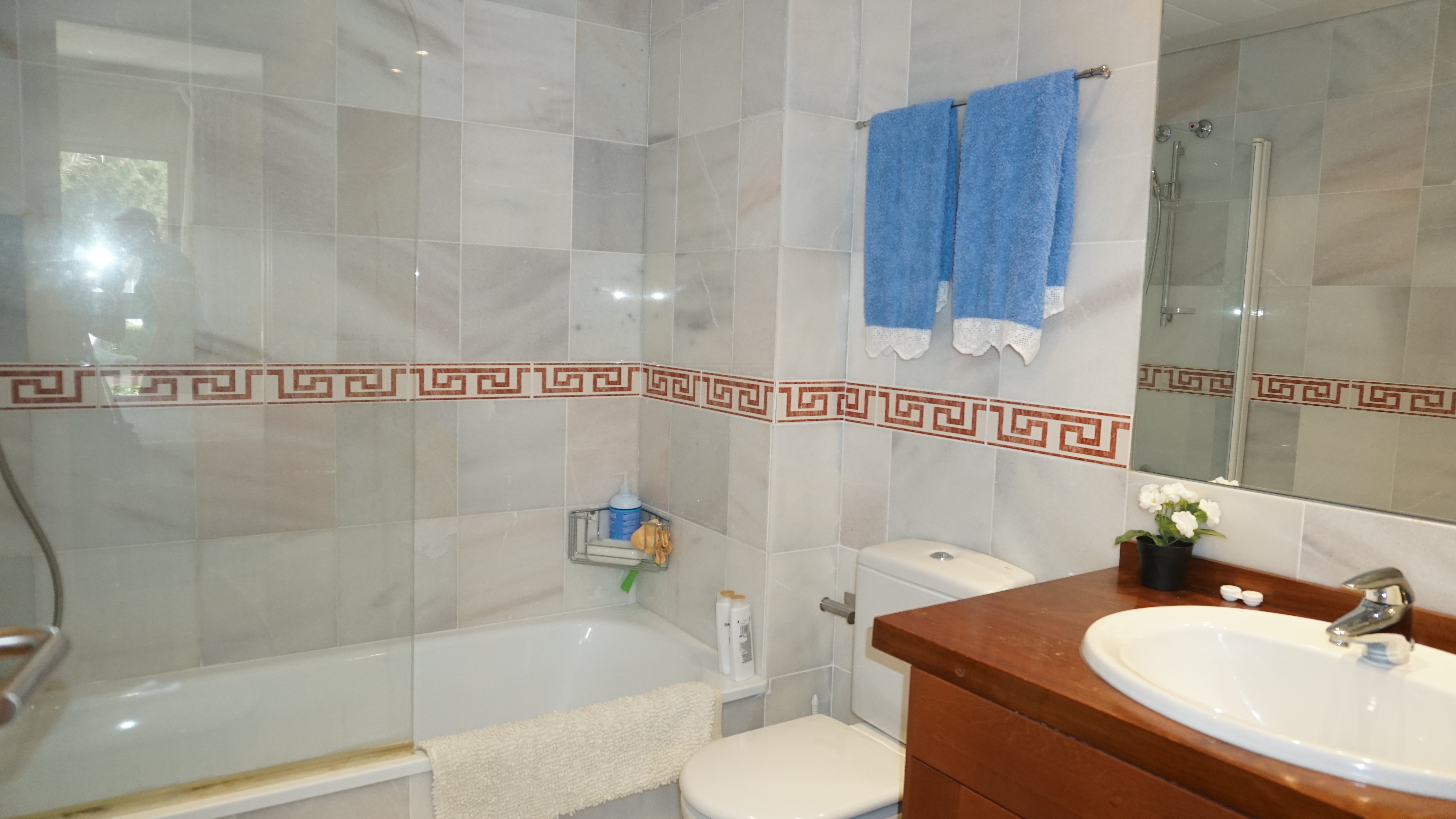 Спальня с собственной ванной комнатой и большим встроенным шкафом, две спальни и еще одна ванная комната на верхнем этаже. Кладовая и парковка на цокольном этаже. Общий бассейн, зеленые лужайки.
