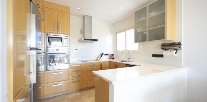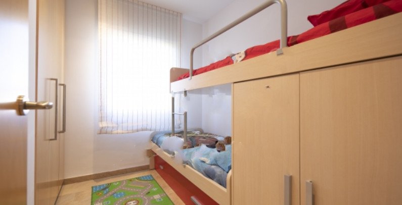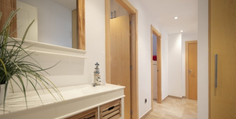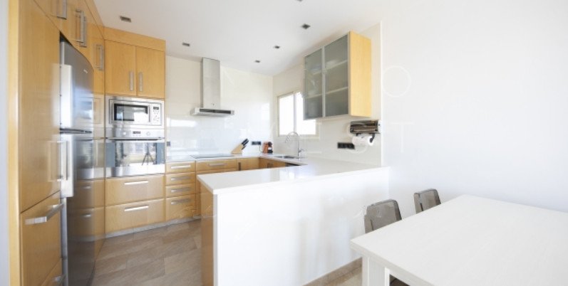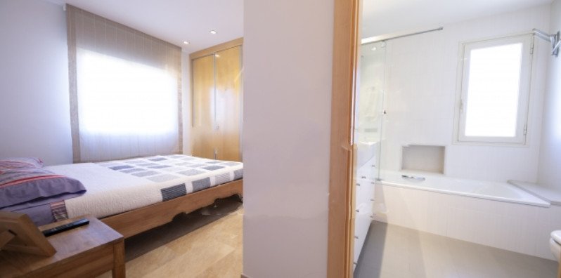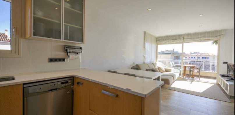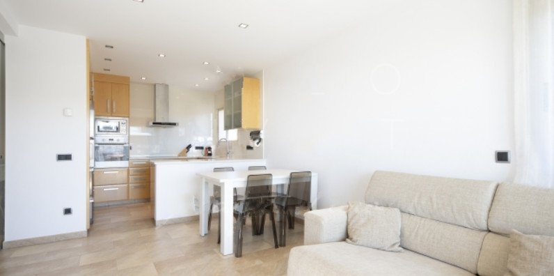 Площадь квартиры 82 м2. Здесь 3 спальни, все со встроенными шкафами, и одна из спален типа сьют. Также есть 2 ванные комнаты и большое открытое пространство, откуда можно попасть в полностью оборудованную открытую кухню, и в очень светлую гостиную с выходом на террасу. Отсюда открывается потрясающий вид на залив Sant Pol и море.