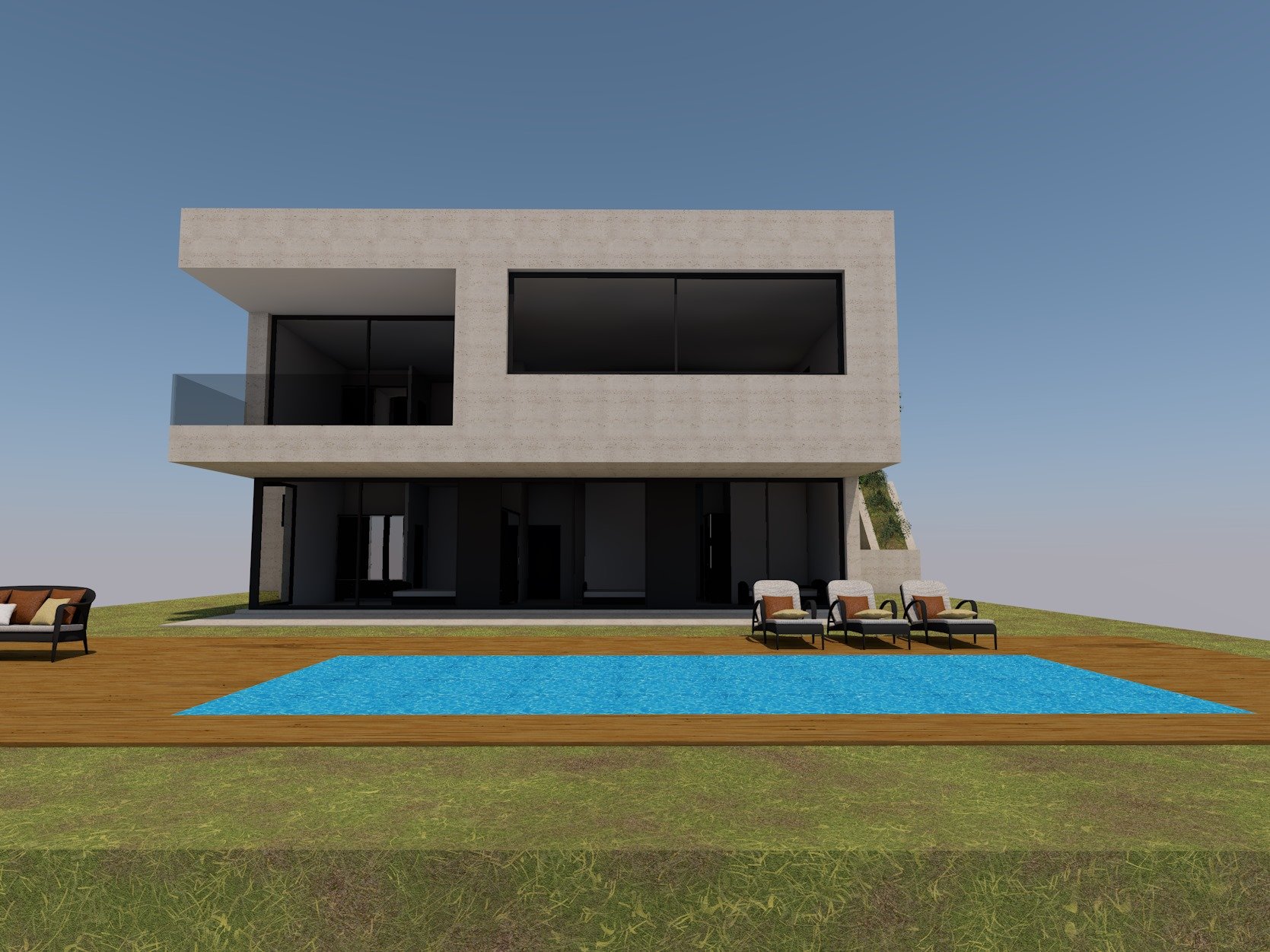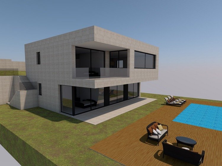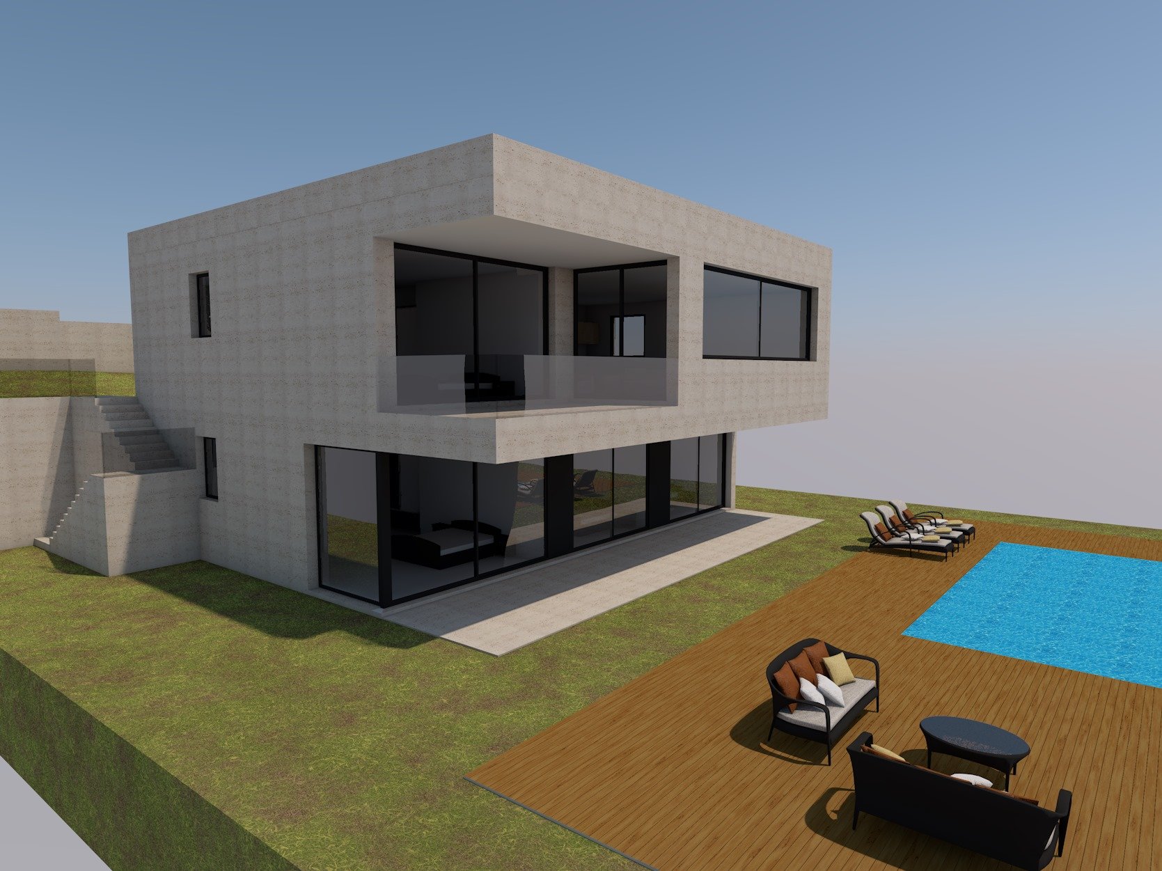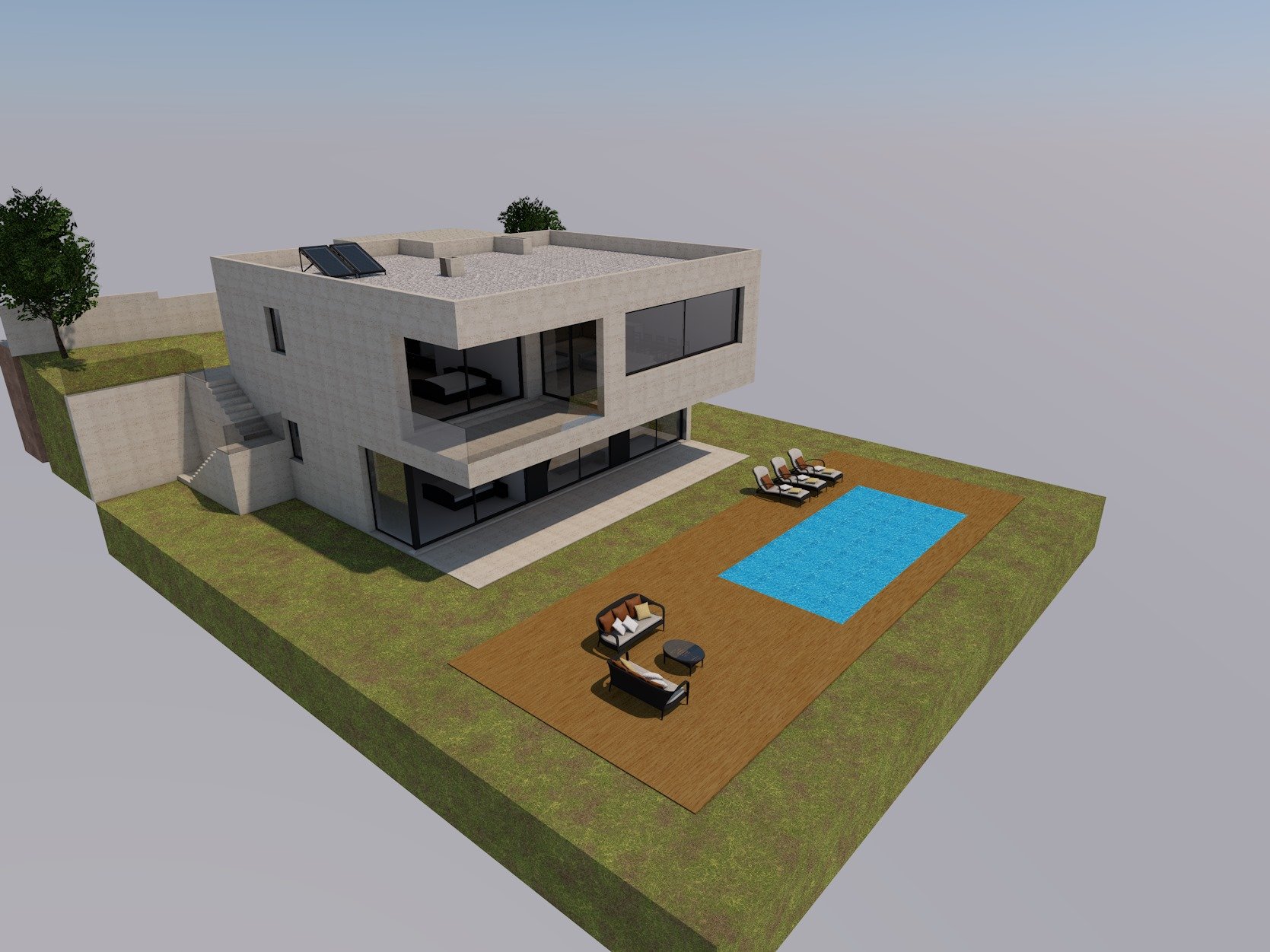 - Окна и балконные двери - алюминий, двойной стеклопакет Cortizo. Опционально - внутренние роль шторы с электроуправлением, жалюзи (на начальном этапе строительства).