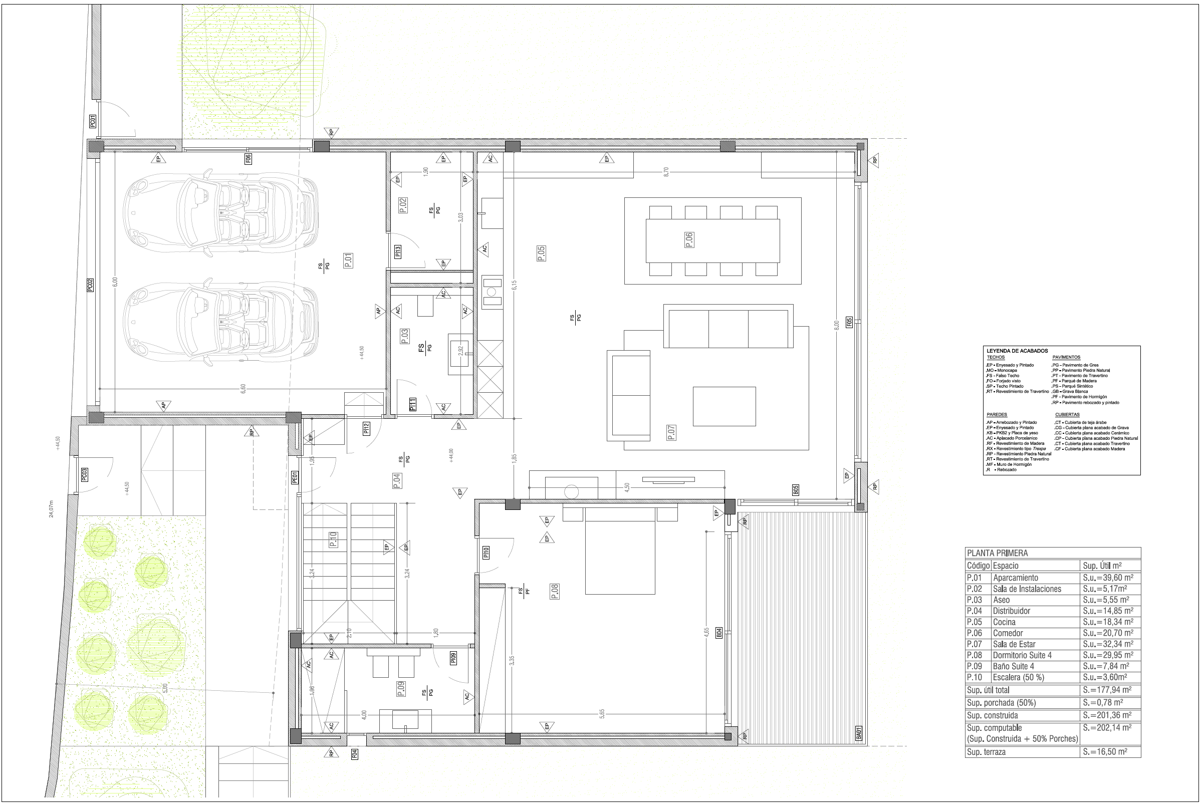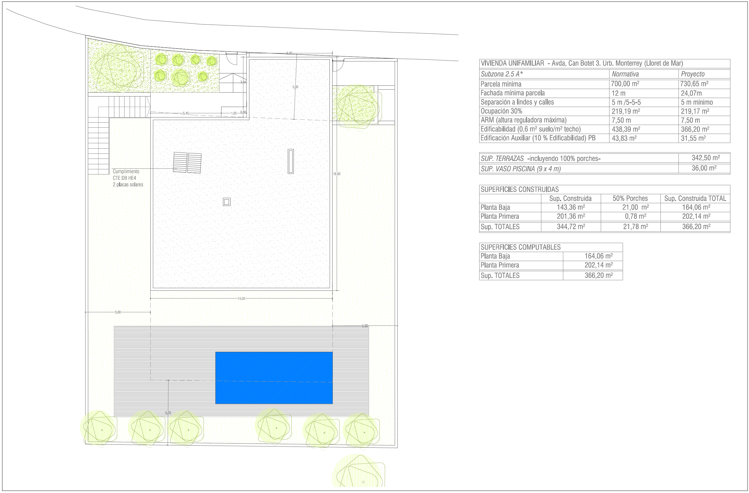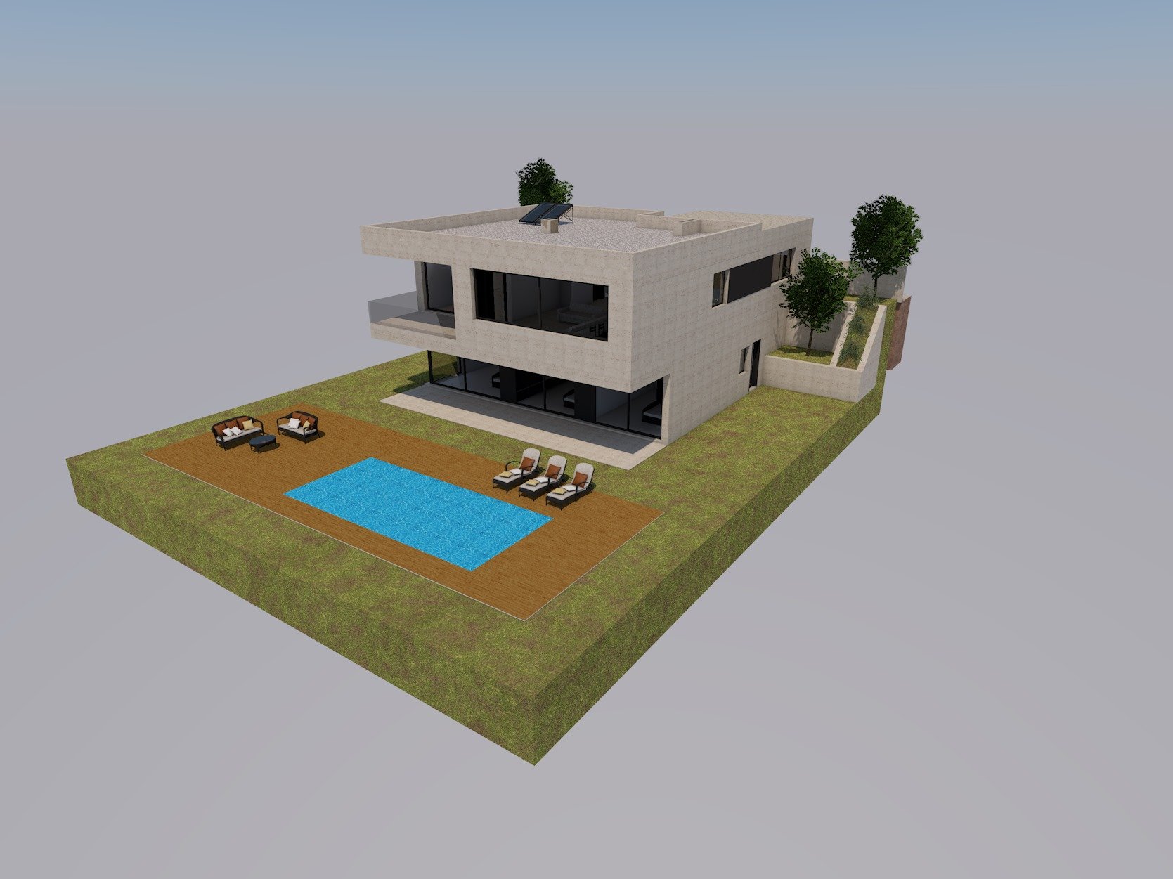 - Озеленение: газонная - натуральная трава. По периметру участка – Leylandi (похожие на кипарисы) высотой 1,40 - 1,50 м. Опционально: пальмы и другие деревья.
