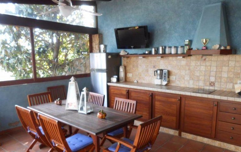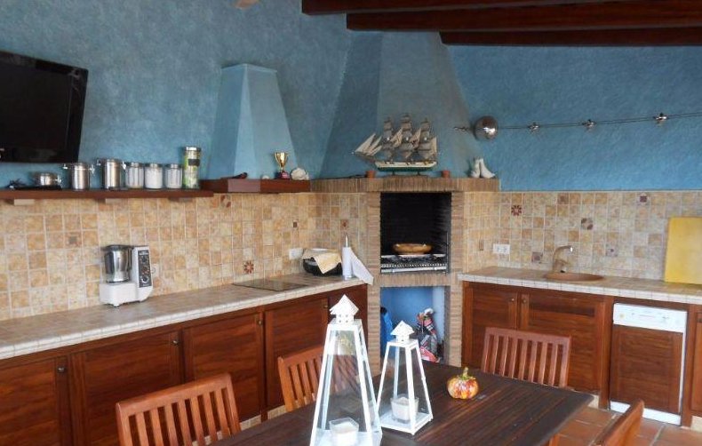 В доме 6 спален (2 типа), 4 ванные комнаты, 1 туалет, большая кухня со столовой, гостиная с камином, терраса с видом на море, открытое крыльцо с летней столовой и кухней, гладильная и прачечная, частный бассейн, парковка и закрытый гараж.