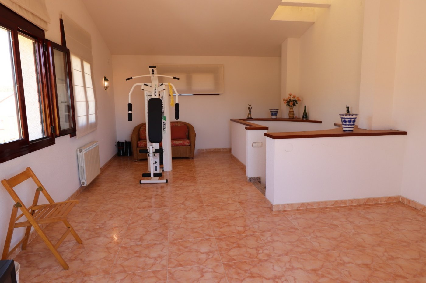 - Уровень 0: кухня с выходом на террасу с видом на улицу, 1 туалет и столовая с прямым выходом на террасу и в сад с верандой и выходом на оживленную улицу, полную виноградников.