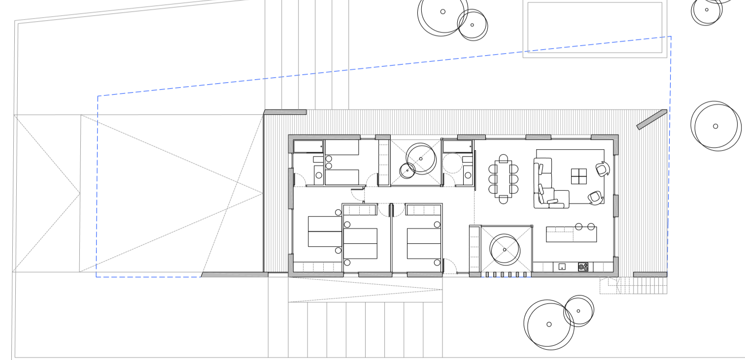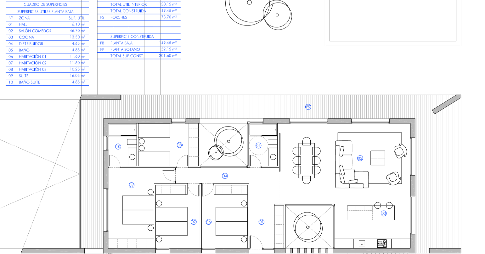 Земельный участок квалифицирован для строительства отдельного дома 201,6 м2 с бассейном. Можно построить цокольный этаж (149.45м2) и подвал (52.15м2). Проект дома включает в себя: холл, гостиную, кухню, 4 спальни, 2 ванные комнаты, дистрибьютор, гараж.