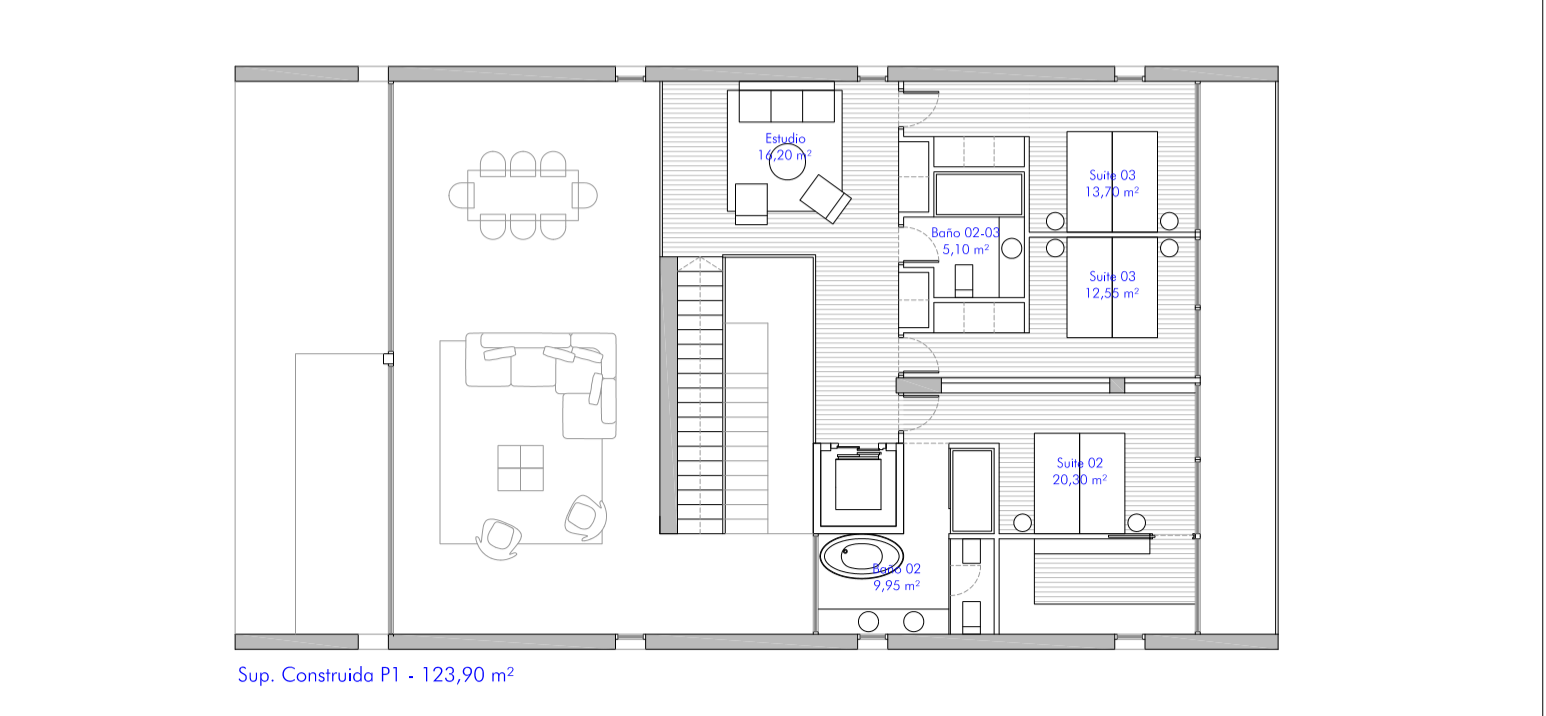 Земельный участок квалифицирован для строительства односемейного дома площадью 413,10 м2 с бассейном. Вы можете построить первый этаж (181. 7m2) с гостиной, кухней, 1 спальней, 1 ванной комнатой, прихожей и прачечной кладовой. Второй этаж (123,9 м2) с кабинетом, 2 ванными комнатами и 3 спальнями. Цокольный этаж (107. 45m2) с людной зоной, внутренним садом, залом и парковкой.