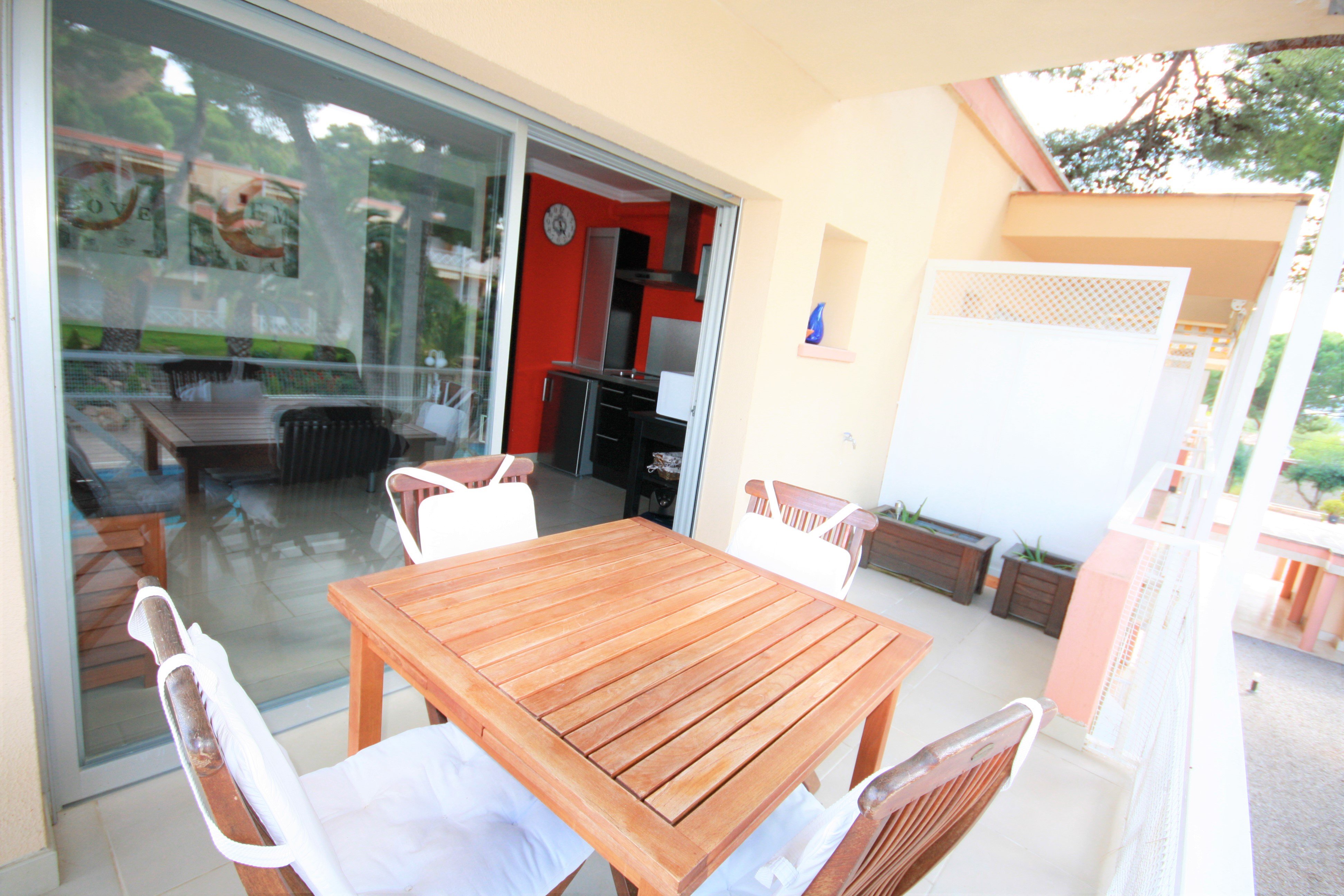 Квартира 40 м2 очень хорошо расположена, в 500 м от центра и в 100 м от пляжа и с видом на горы и море. Состоит из спальни с двуспальной кроватью и шкафом (вид на море). Ванная комната с большим душем, столовая-кухня с раскладным диваном и террасой с видом на бассейн. Общая зона с бассейном и барбекю. Он продается с мебелью и бытовой техникой. В настоящее время предназначена для туристического проката.