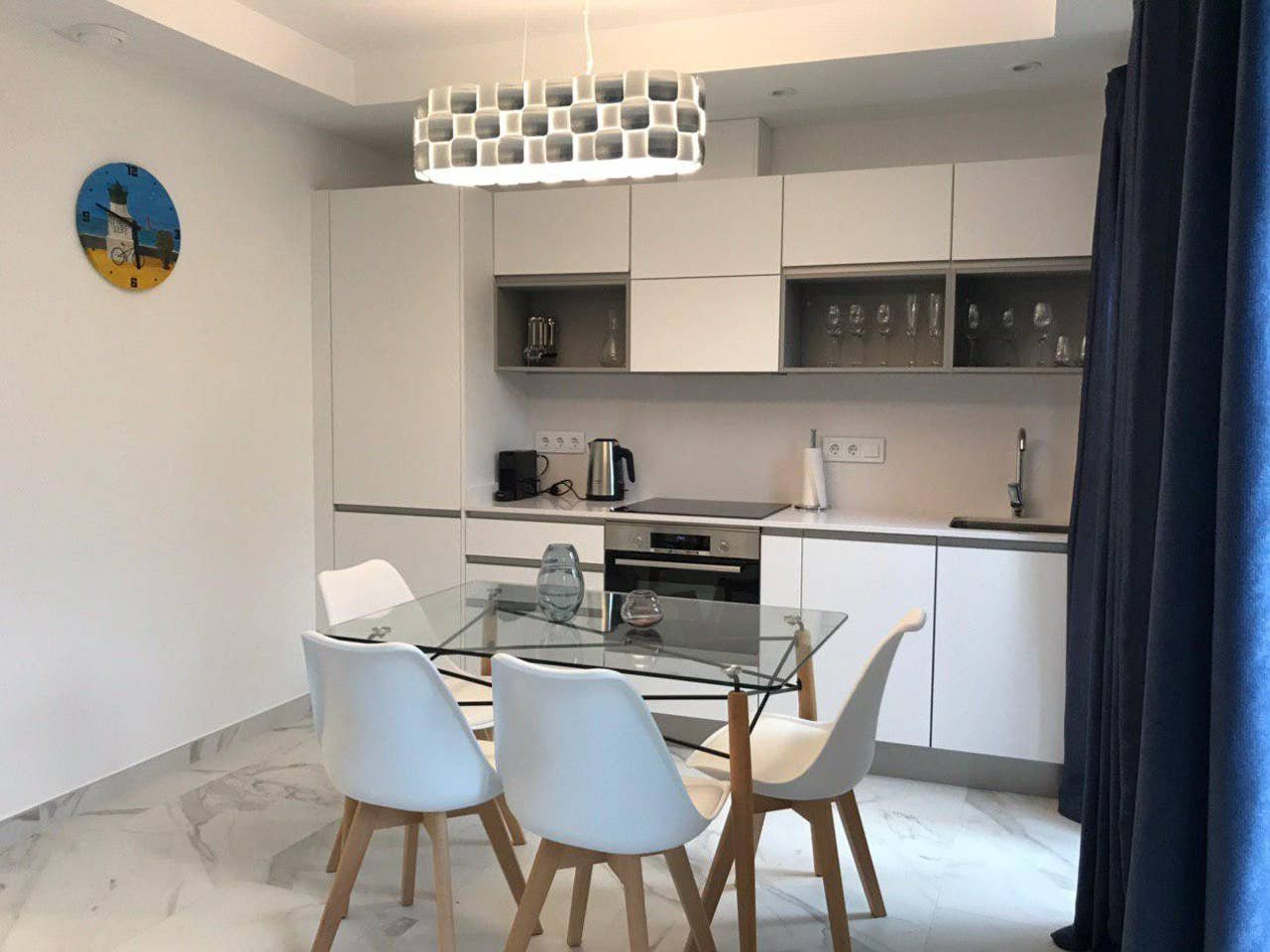 Светлые дизайнерские современные двухэтажные апартаменты с большой гостиной, двумя спальнями и двумя душевыми комнатами, туалетами. Спальни находятся на разных этажах. На верхнем этаже большая терраса с видом на море. До моря пешком 1 минута - 50 метров. Все новое, только построенное. Горячая вода и отопление - от газа (регулируется в квартире). Быстрый бесплатный интернет, wi-fi, apple-TV. Квартира оборудована всем необходимым для комфортного проживания и отдыха. Дом всего на две квартиры.
