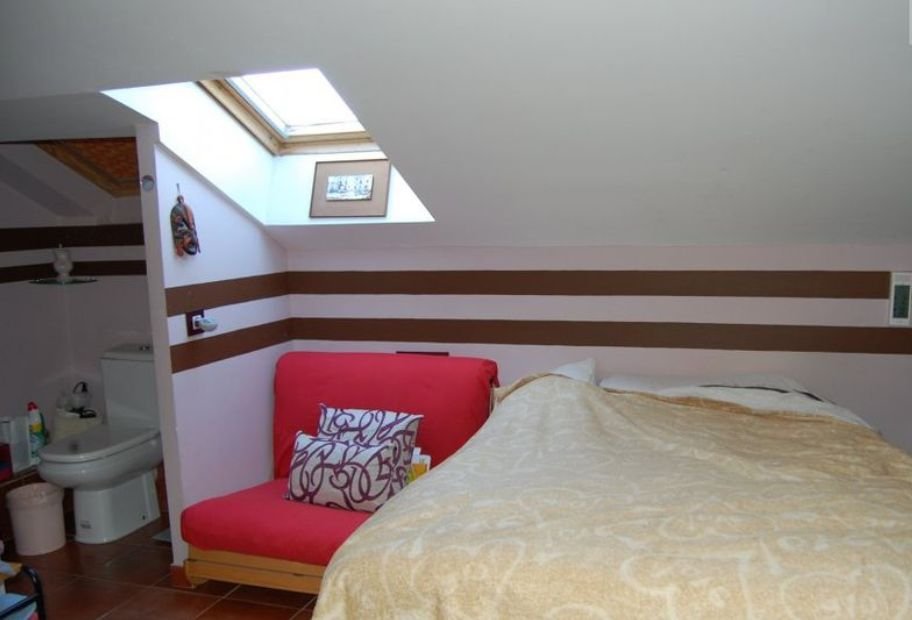 На первом этаже располагается гостиная - столовая с камином и прямым выходом на террасу, открытая кухня, две спальни с двуспальными кроватями. На втором этаже есть пустая комната (без мебели), а также большая спальня с гардеробной и ванной комнатой.