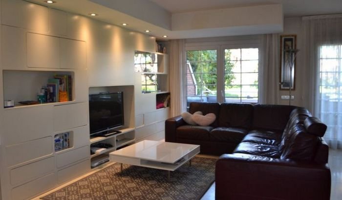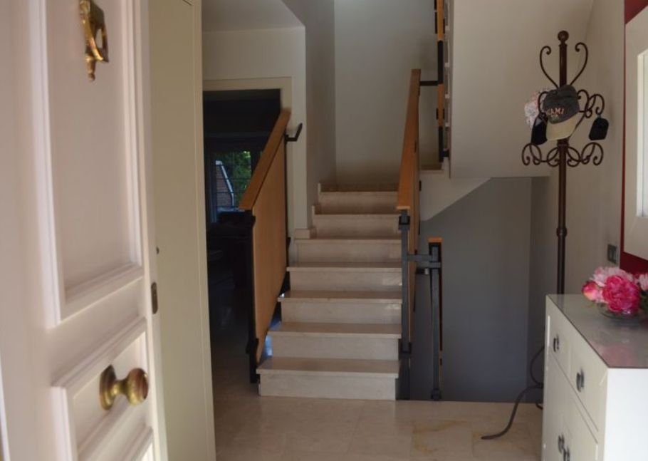 Также есть четыре спальни, одна из них с ванной комнатой и кухня. оформление комнат очень яркое, запоминающееся, вызывает только положительные эмоции. В подвале дома располагается гараж. Дом оснащен кондиционером, сигнализацией, встроенной мебелью. Рядом находится общий сад и бассейн.