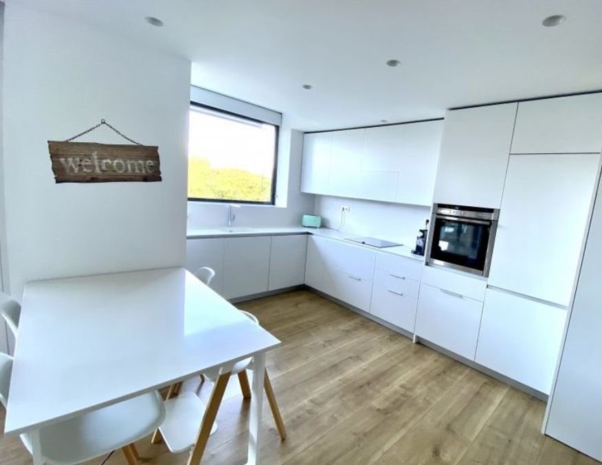 Кухня встроенная, полностью обшита панелями, оборудована современной техникой (NEFF, LIEBHERR и SIEMENS) и мебелью, скрытой вытяжкой с внешним двигателем для лучшего всасывания и снижения шума. Зона для мытья посуды полностью отделана специальными панелями.