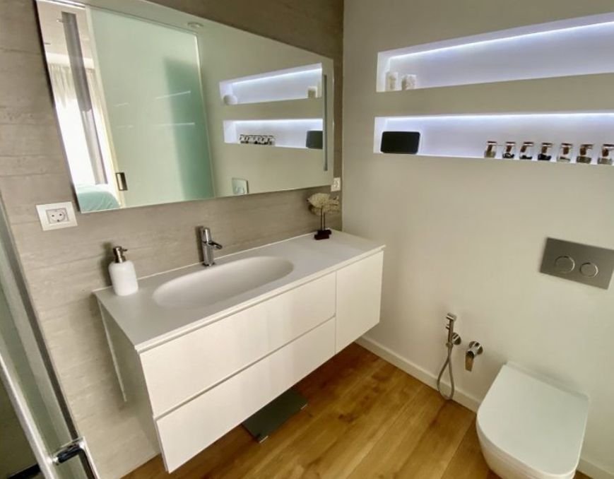 К квартире примыкает терраса с навесом ( 12м2), с неё открывается незабываемый вид на Гарраф и большую общественную зону. Рядом с квартирой есть кладовая и парковочное место.
