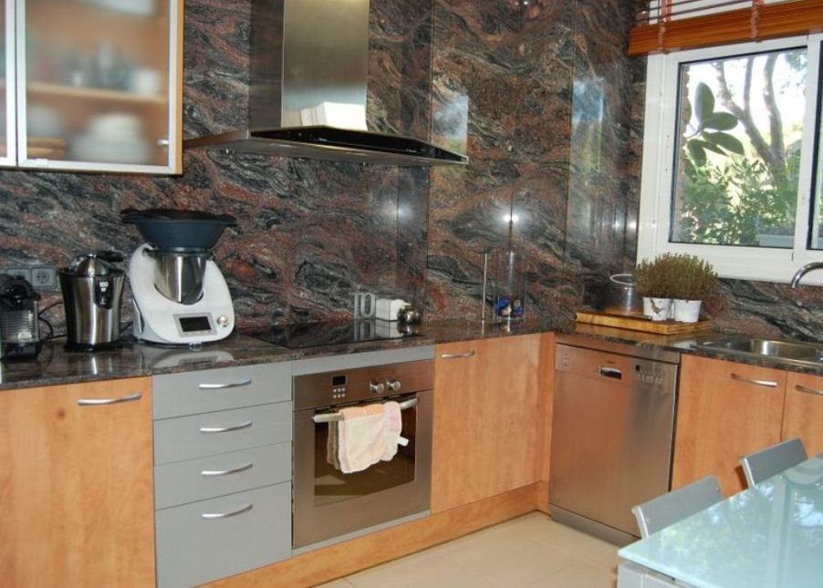 Оригинальный двухквартирный дом для комфортной жизни с семьей. Он располагается всего в двух улицах от пляжа Гава Мар. В доме три этажа. На первом располагается гостиная, из которой можно попасть в сад и на террасу, здесь же находится большая кухня и туалет для гостей.