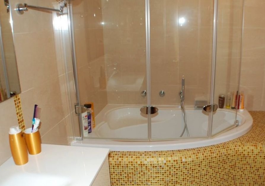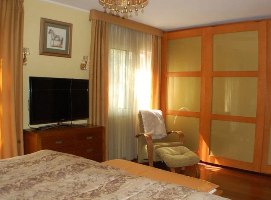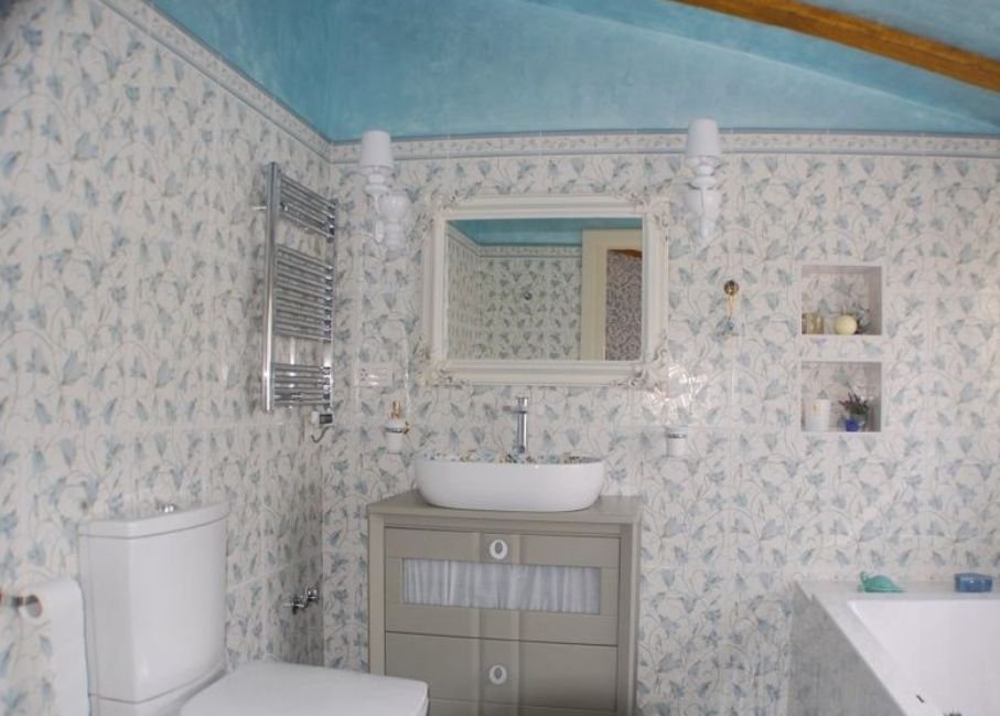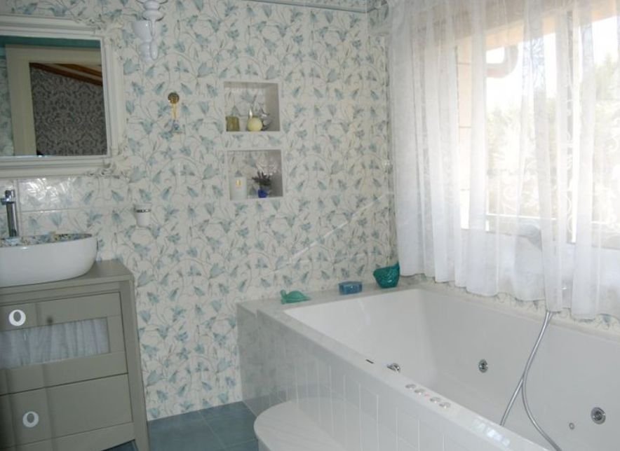Дом окружен садом, пройдя через который , мы попадаем сначала в гостиную с выходом на террасу и к бассейну. Также на первом этаже есть ванная комната с душем . На втором этаже находятся 3 двухместные спальни и ванная комната. На мансардном этаже есть отдельная просторная квартира со спальней, в которой размещена двуспальная постель, ванная комната с джакузи, гостиная с кухней и выходом на террасу.