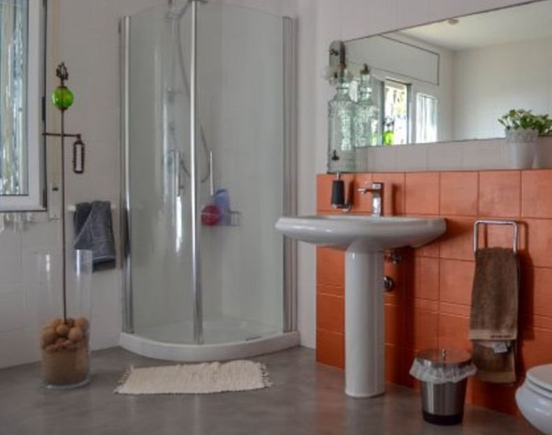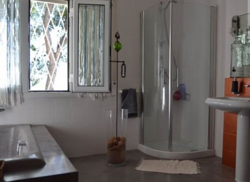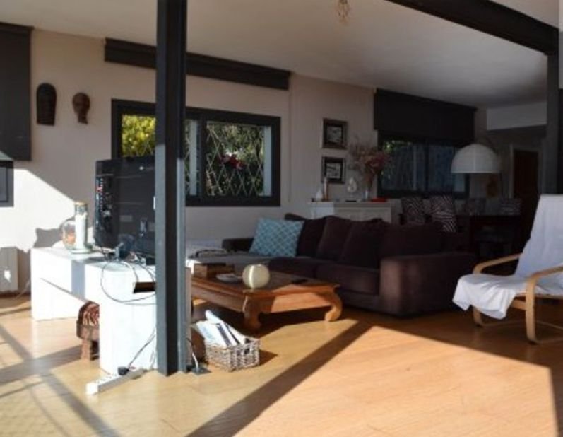 Сам дом двухэтажный, площадь составляет 425 м2, он разделен на две полностью независимые квартиры. Первая квартира размещается на первом этаже и занимает 150м2, все комнаты в квартире: гостиная с выходом на солнечную террасу , открытая функциональная кухня, два ванные с душем, а также три спальни - очень просторные.