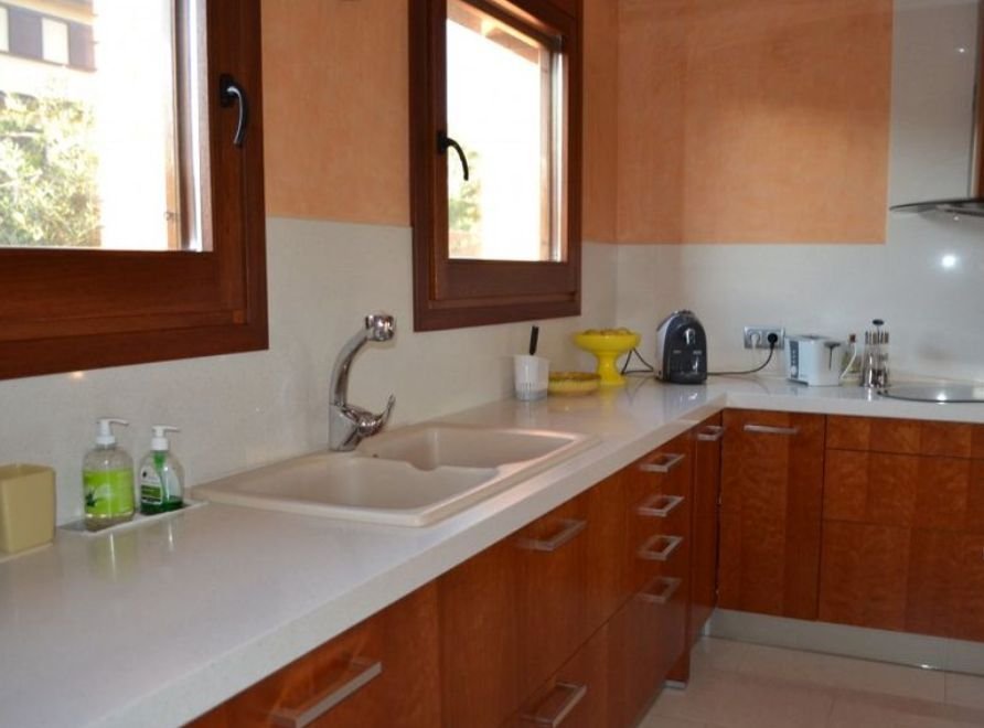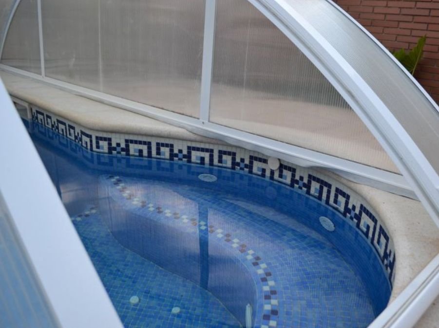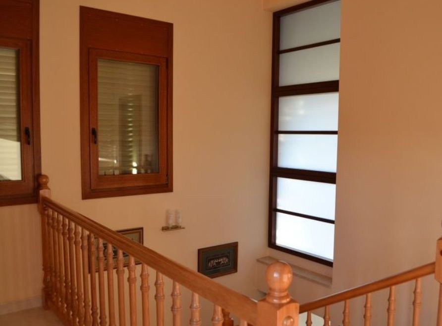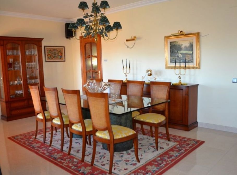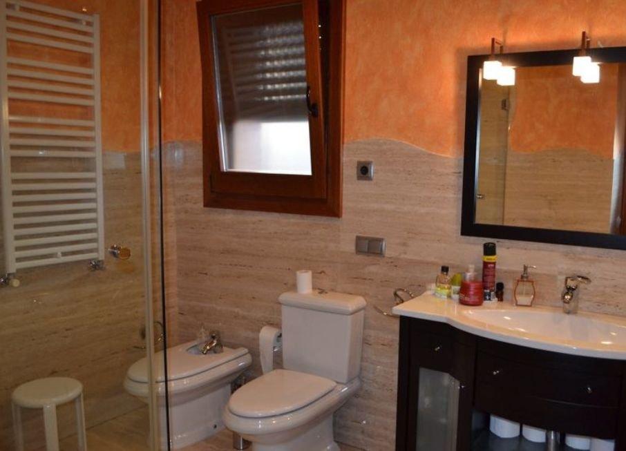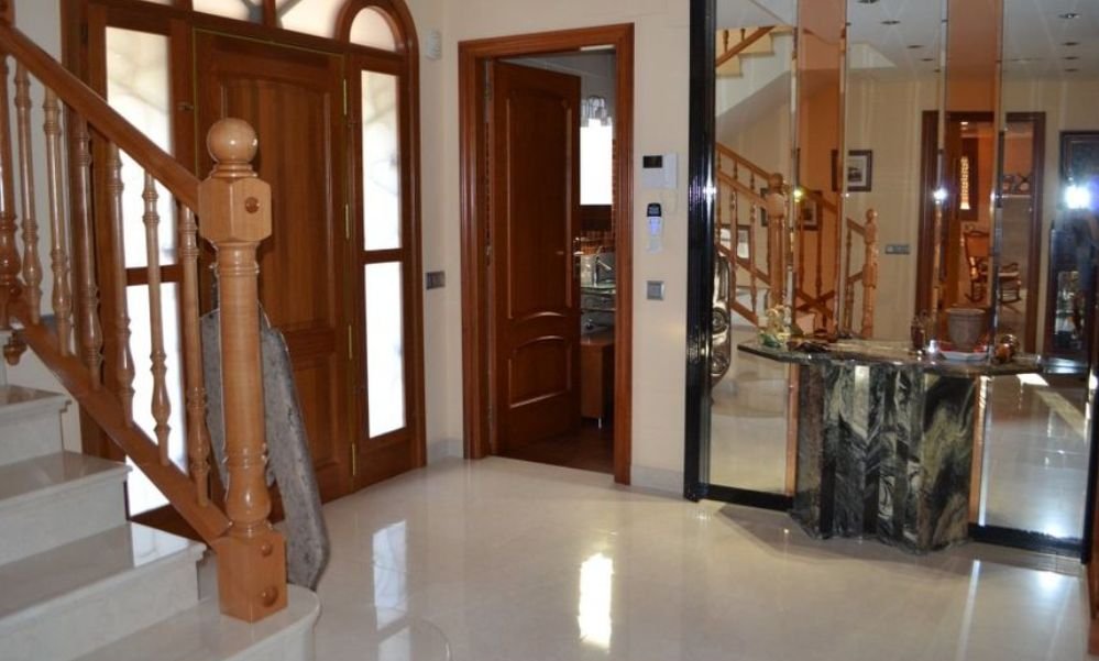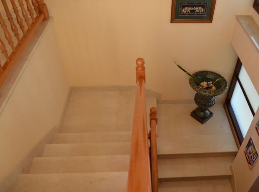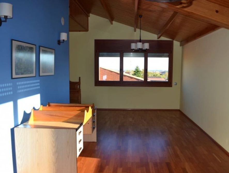 В цокольном этаже есть спортзал, ванная комната, подвал и столовая с дровяным камином. Парковка на 4 машины с автоматической дверью, а также комната с масляным баком центрального отопления. В доме также есть сигнализация, умягчитель и система фильтрации воды. В саду располагается фруктовый сад, бассейн с джакузи, оборудованный системой солевого хлорирования, площадка для барбекю.