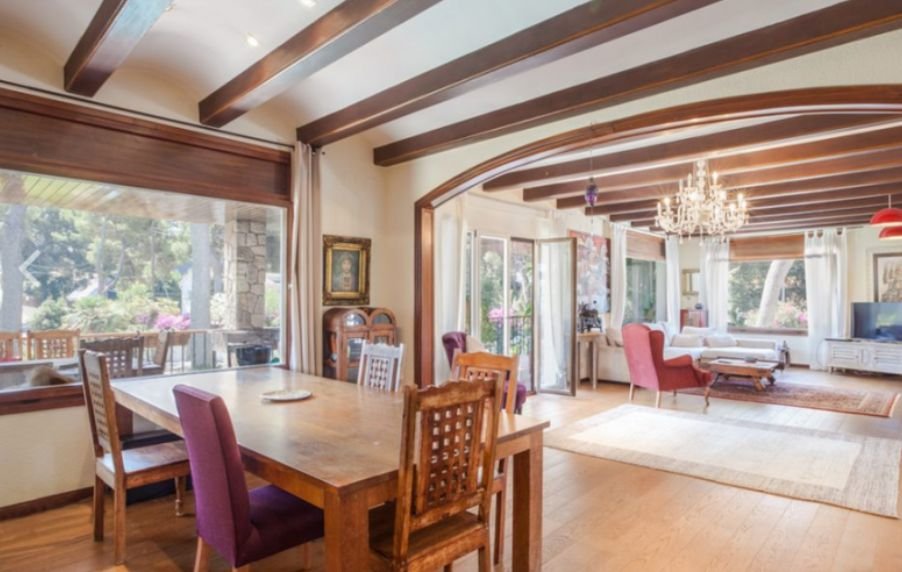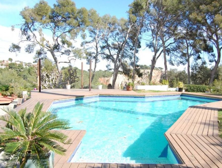 Этот дом располагается в эксклюзивном районе Белламар, Кастельдефельс, он буквально окружен зеленью и находится в тихом, приятном месте. Рядом с домом находится Британская школа Барселоны и Британский колледж Гава, в 10 минутах от дома располагается аэропорт Барселоны и столько же времени нужно будет потратить, чтобы добраться от дома до пляжа Кастельдефельс.
