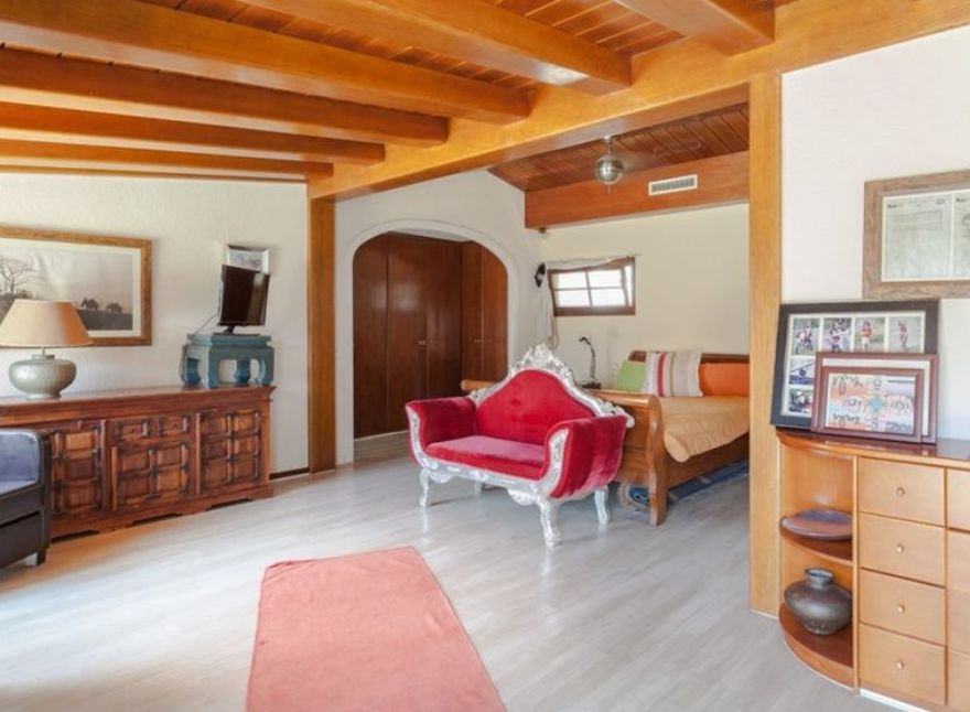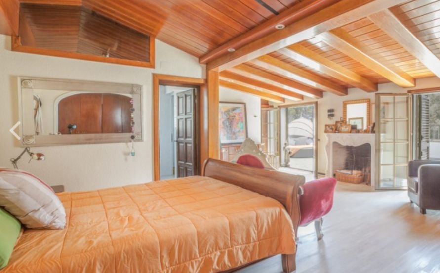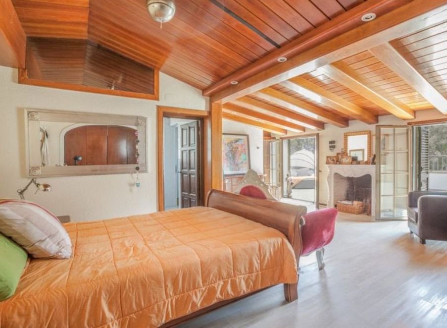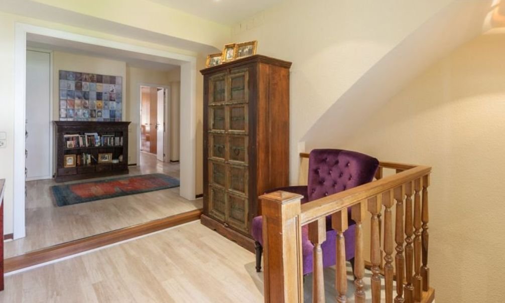 Красивая деревянная лестница ведет на второй этаж, где можно найти ещё три спальни, в главной комнате есть встроенные шкафы, выход на просторную террасу, камин и полностью оборудованную ванную комнату. Две другие спальни двухместные, они тоже оснащены встроенными шкафами. На этаже также есть просторная ванная комната с джакузи.