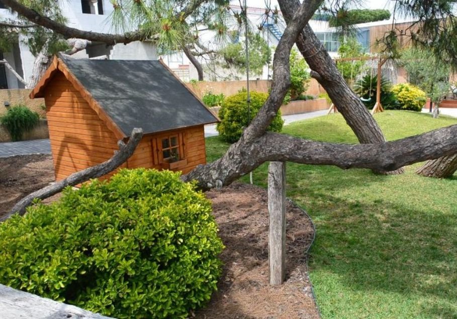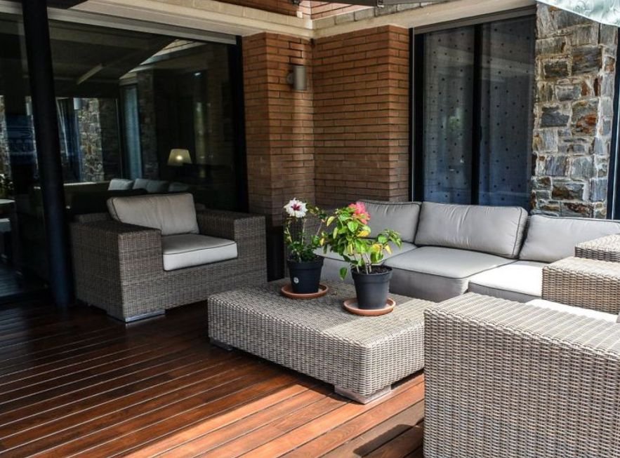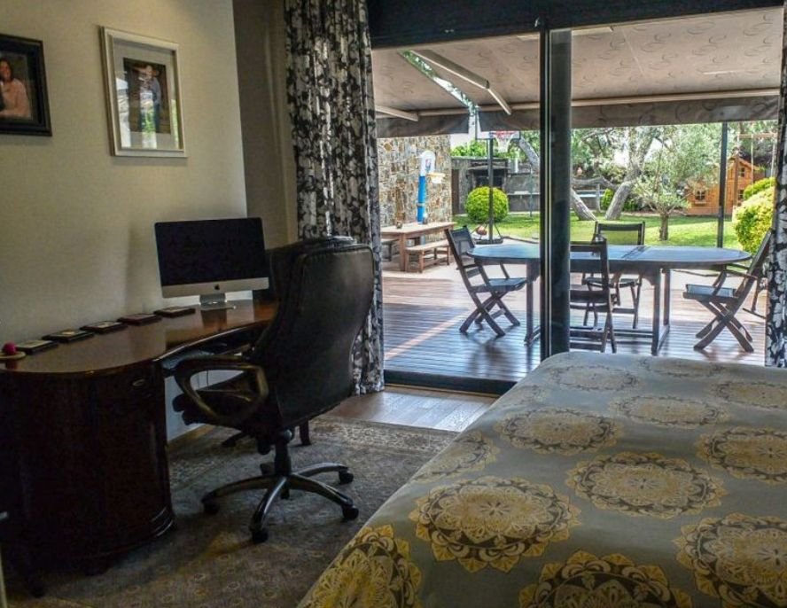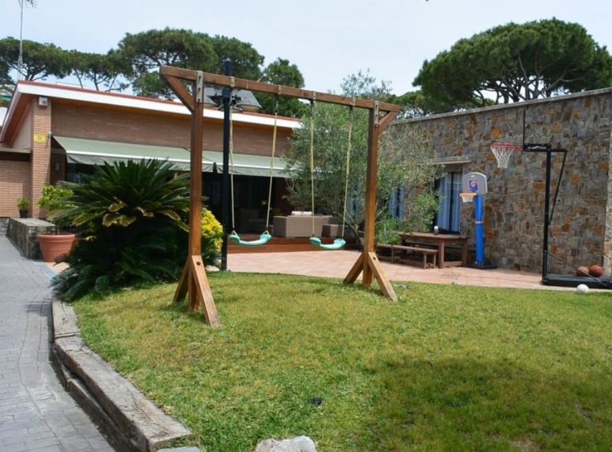 Снаружи дом окружает большой сад, просторная терраса и площадка для барбекю, а также бассейн.