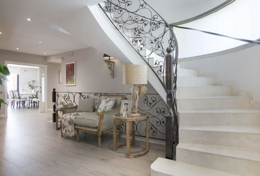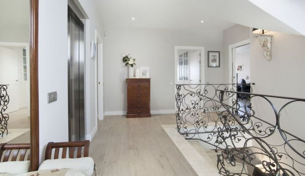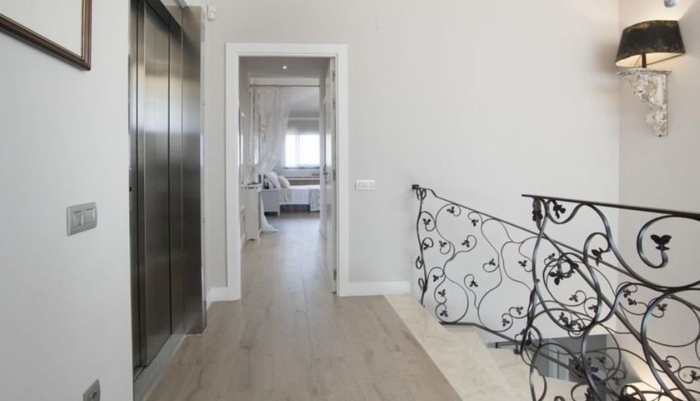 На втором этаже дома располагаются комнаты с изысканным дизайном, каждая из них имеет выход на террасу. На второй этаж можно попасть не только по шикарной винтажной лестнице, но и на лифте, который может доставить также в гараж.