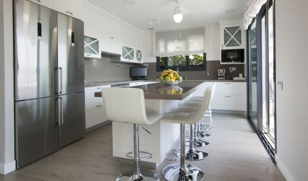 Он был построен в 2015 году, и до сих пор выглядит привлекательно. К плюсам этой собственности можно отнести большие стеклянные двери и большие окна, через которые можно любоваться шикарным садом и видами моря, а также многочисленные выходы из дома, ведущие на террасу, в сад и к бассейну. Дизайн дома представляет собой классический стиль шик. Во всех комнатах использованы приятные сочетания цветов.
