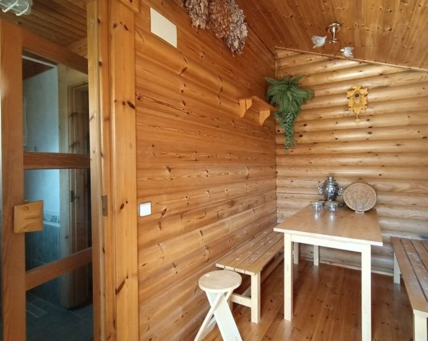 В отдельной зоне прачечная, дровяная сауна с бассейном, открытая парковка для нескольких автомобилей.