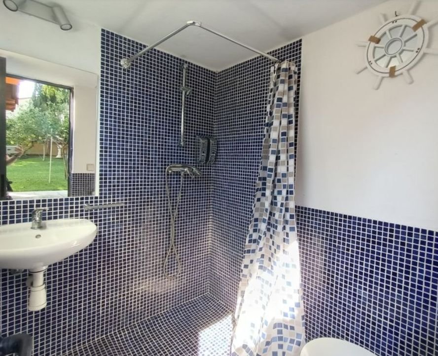 Дом состоит из просторной гостиной с выходом на террасу, люкса с большой ванной, и трех спален.