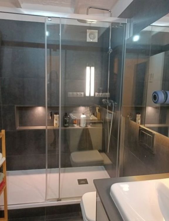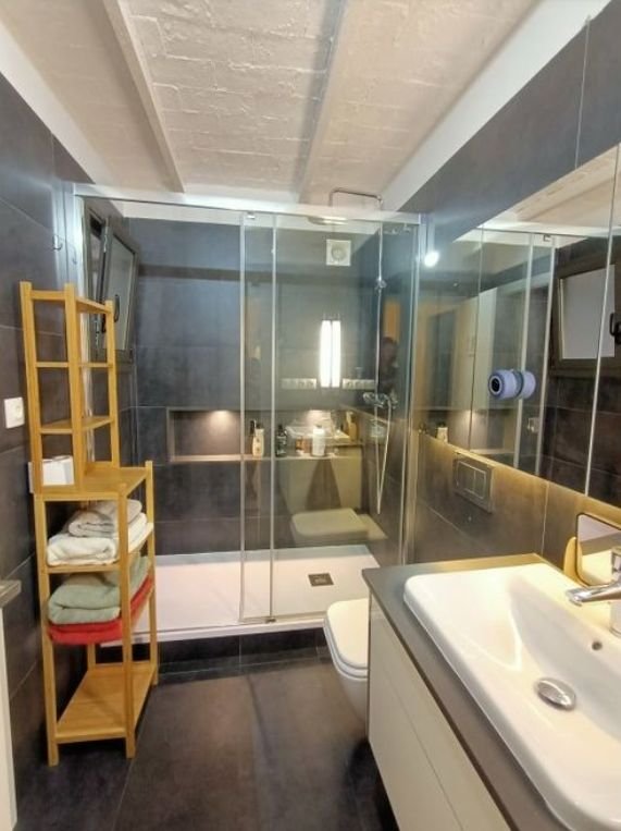 Реконструкция выполнена с большим вкусом, с отделкой на высоком уровне, в том числе: централизованная горячая и холодная вентиляция, с регуляторами и автоматическими решетками для каждой комнаты, бак для горячей воды на 300 л, светодиодное освещение, датчики света. Здание 1946 года постройки, в хорошем состоянии, с лифтом и общественной крышей. Коммунальный сбор 67 евро в месяц.