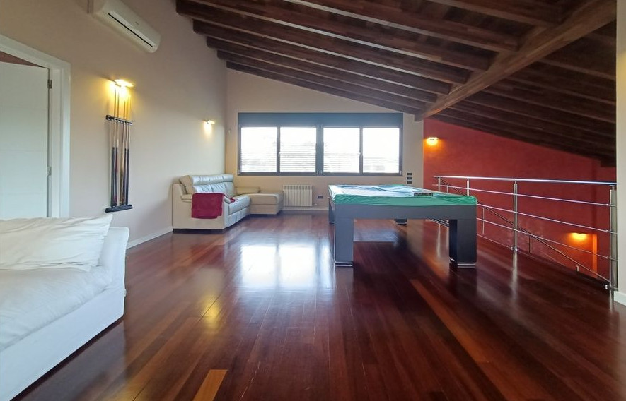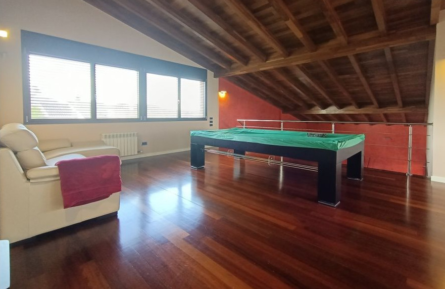 На втором этаже организовано пространство для семейного отдыха. Сейчас комната спроектирована как помещение для бильярдной, но вы можете обустроить его по своему усмотрению. На этом этаже также находится главная спальня с гардеробной и собственной ванной комнатой.