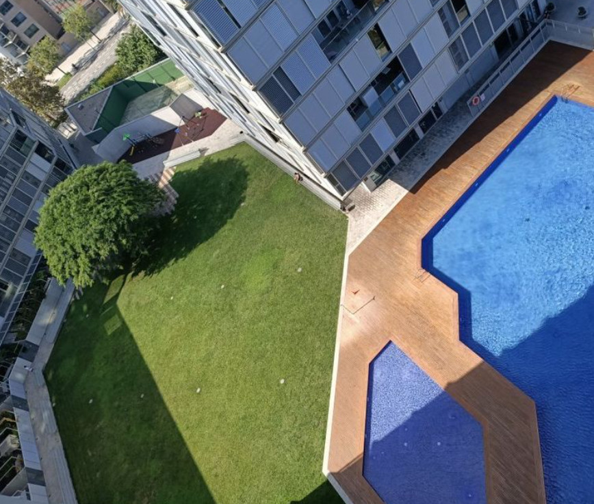 В здании есть швейцар, лифт, сад и общий бассейн, корт для падл-тенниса, детская зона, тренажерный зал и круглосуточная охрана, установлена система кондиционирования и отопления, видеодомофон. Парковочное место и кладовая включены в цену.