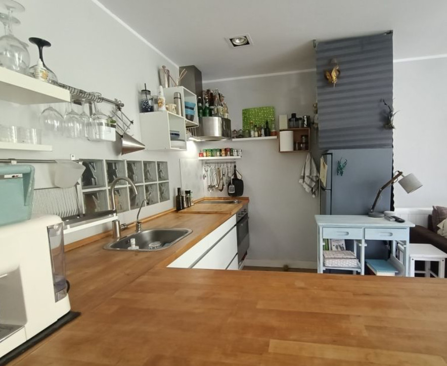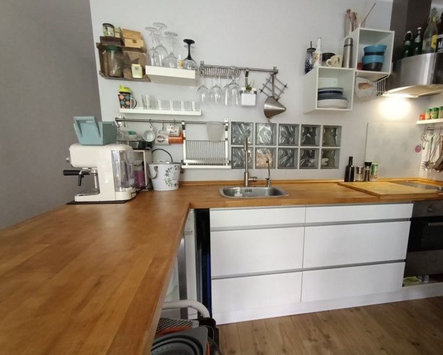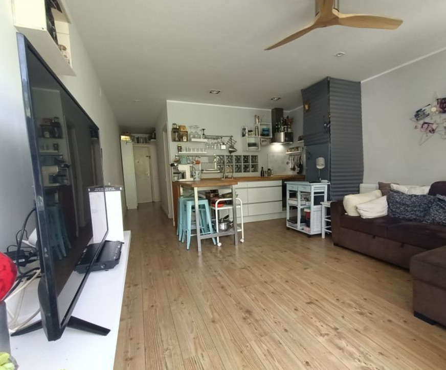 Площадь квартиры – 55 м2 плюс балкон 5 м2. В апартаментах гостиная, где напольное покрытие – парке. Установлены алюминиевые стеклопакеты. Кухня небольшая, в американском стиле, которая не закрыта от гостиной. Главная спальня с двуспальной кроватью. Есть еще одна небольшая спальня и общая ванная комната. Квартира полностью отремонтирована несколько лет назад.
