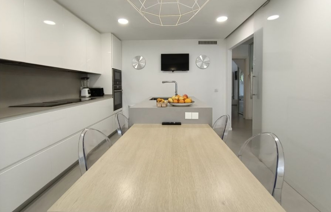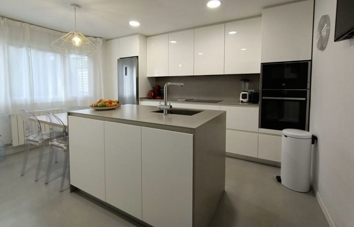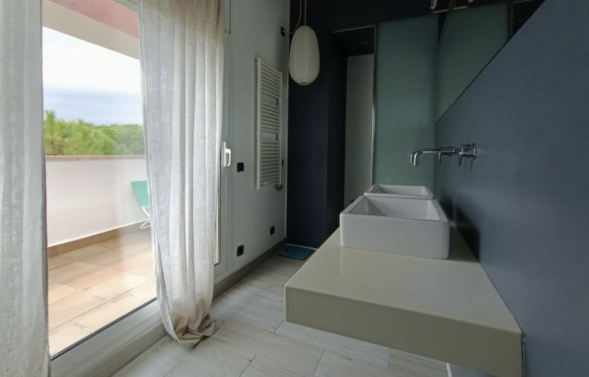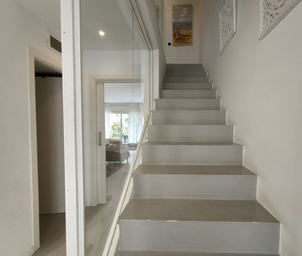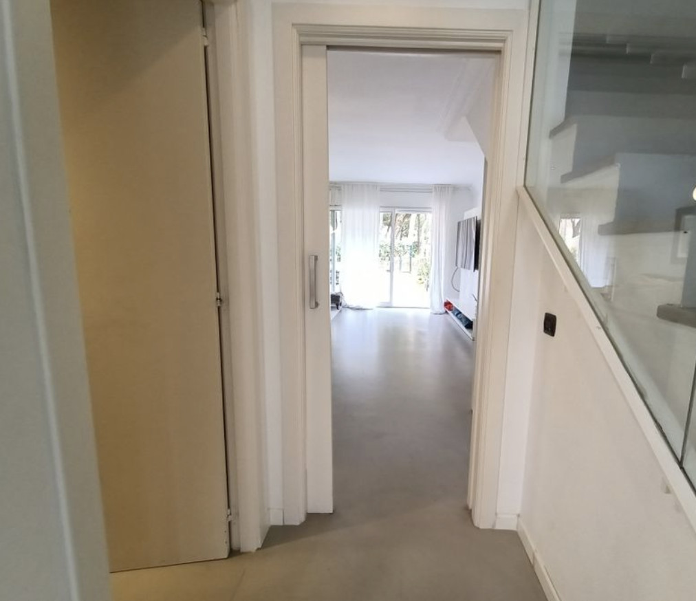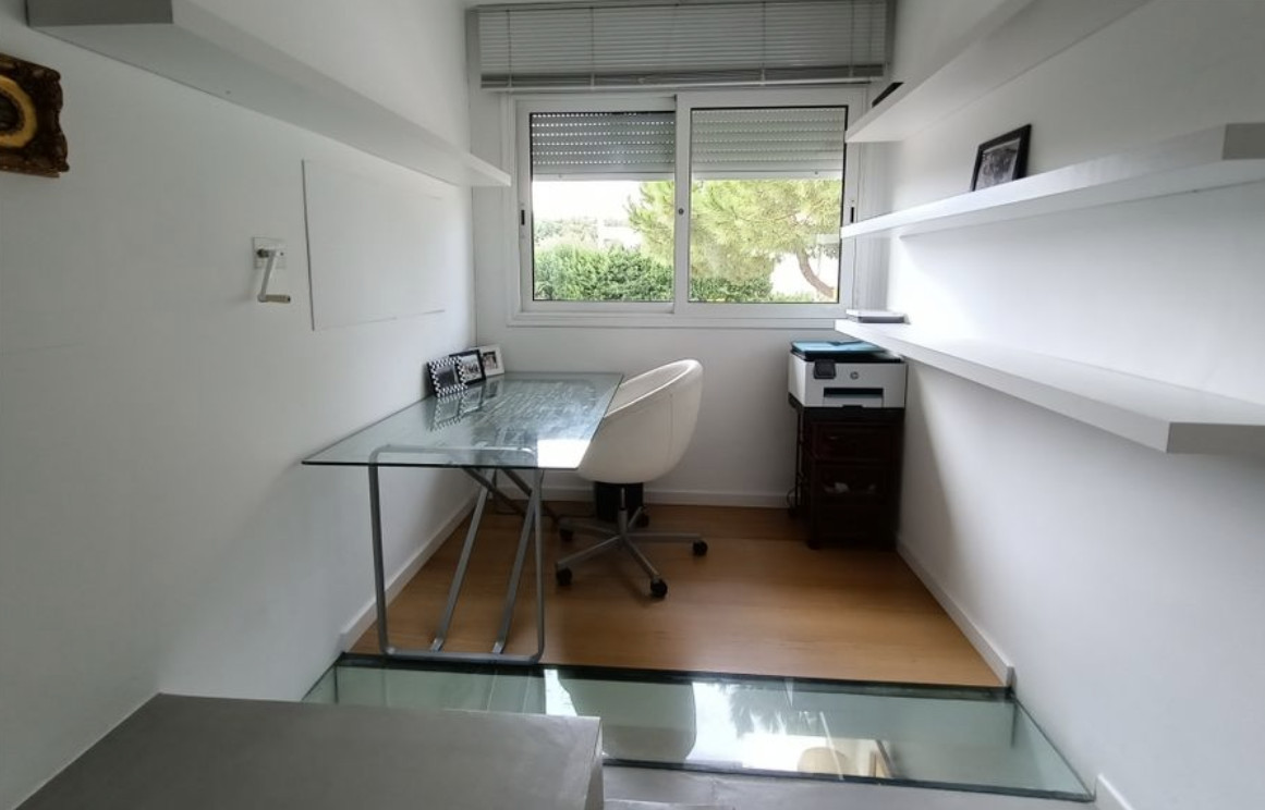 Здесь просторная гостиная-столовая площадью 45 м2 с выходом на впечатляющую террасу, откуда можно выйти в общий сад с бассейном. Красивая кухня с островом, застекленный офис, чтобы иметь возможность вести свой бизнес в очень удобной и светлой обстановке.