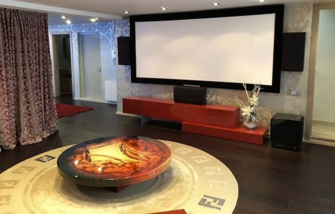 На цокольном этаже оборудован прекрасный кинозал, где можно проводить лучшие вечера семейного кино, а также еще одна игровая комната, гардеробная, комната для обслуживания, ванная комната, водная зона, гараж и машинное отделение у бассейна.