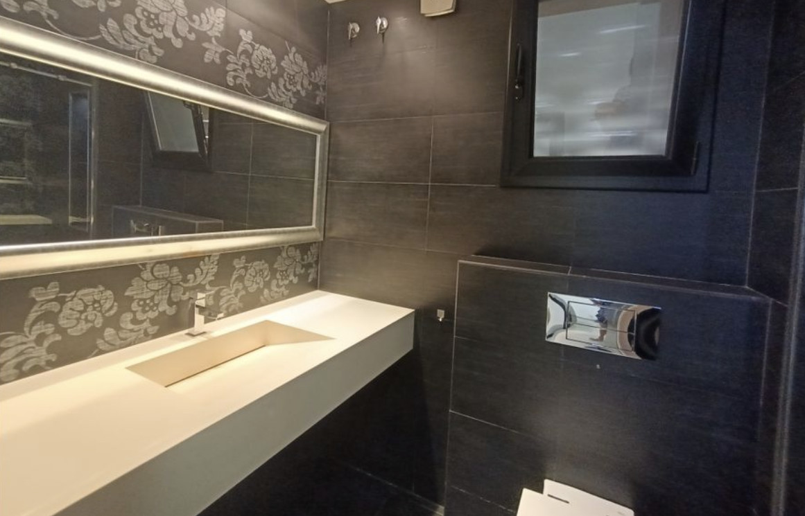 На первом этаже находятся вестибюль, большая полностью оборудованная современная кухня и прачечная. Столовая с выходом на большую террасу площадью 38м2с видом на море. Также здесь гостиная с прекрасным видом на море 40м2. Дизайнерский гостевой санузел. 1 двухместная спальня, терраса площадью 40 м2.