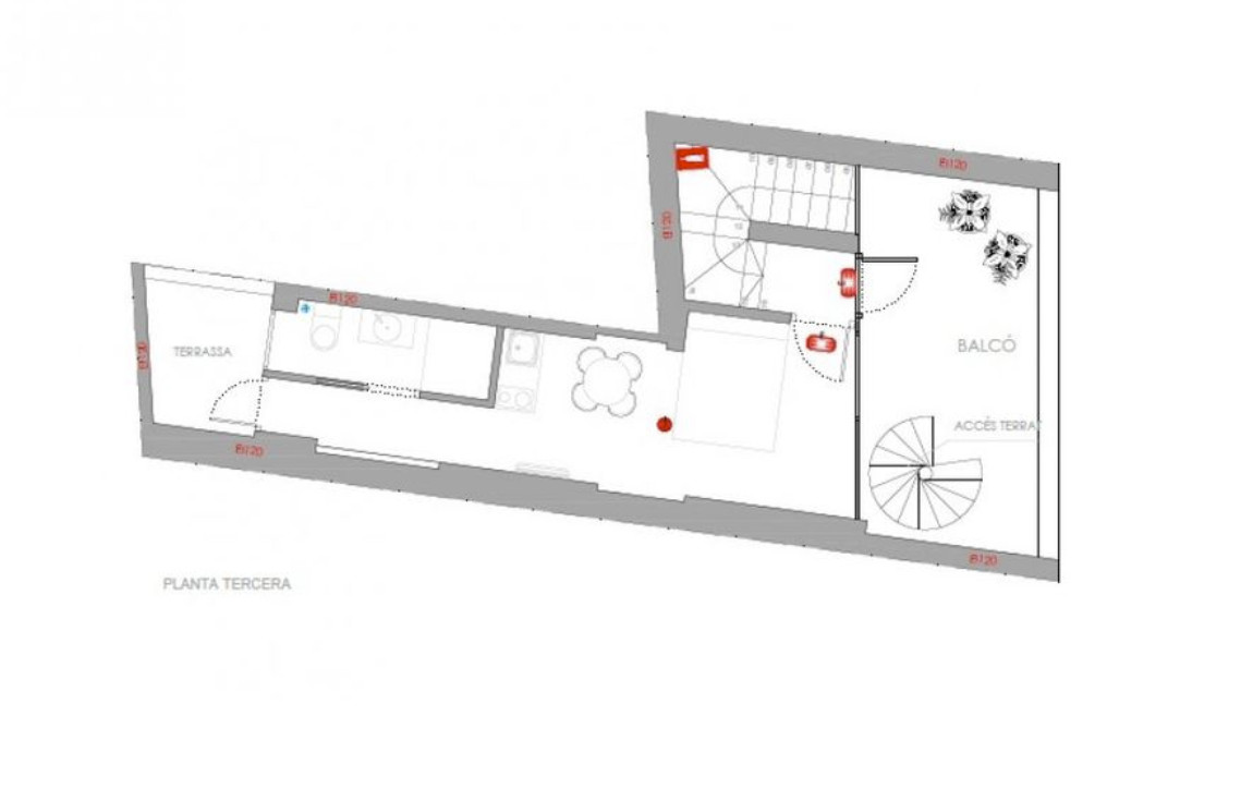 Sitges. Квартира расположена на второй линии пляжа Сант-Себастьян, с террасой и полуотремонтированным