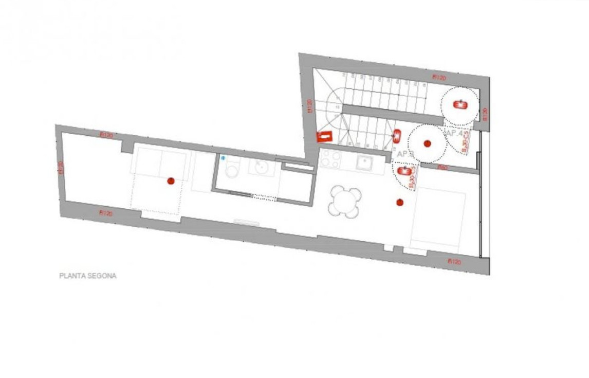Также есть гостиные. На верхнем этаже есть две общие террасы для четырех квартир. Есть туристическая лицензия.