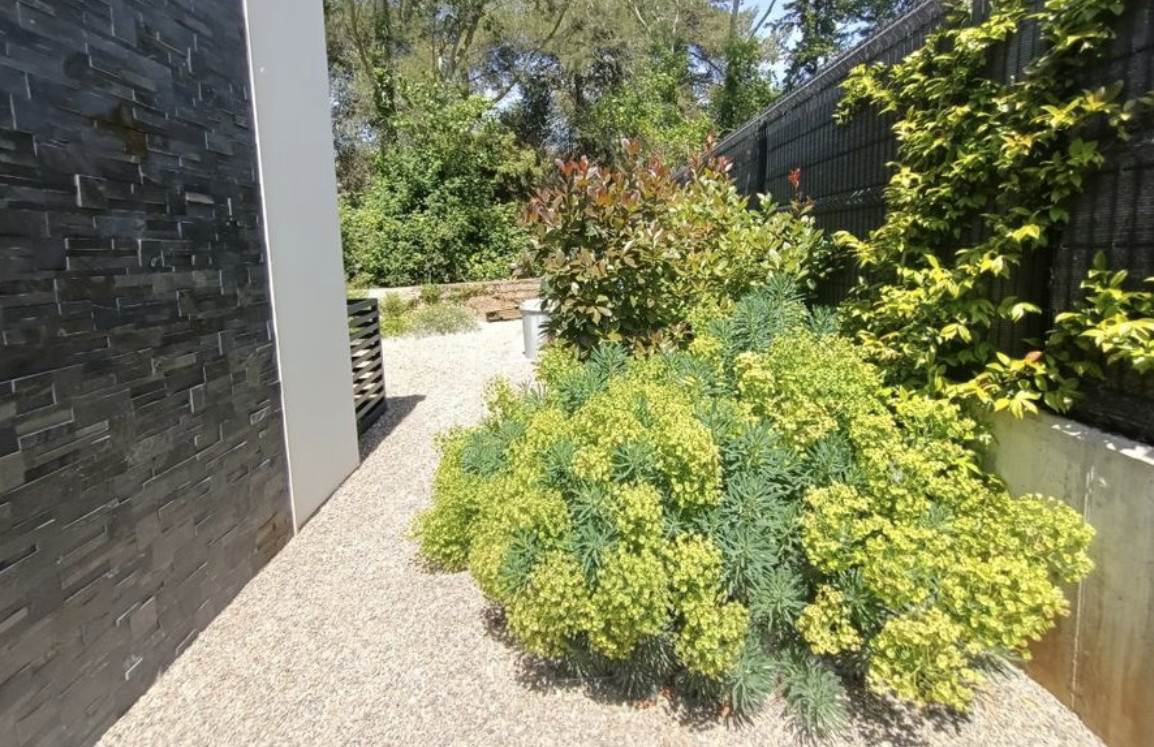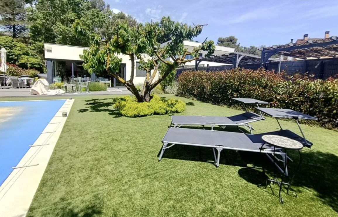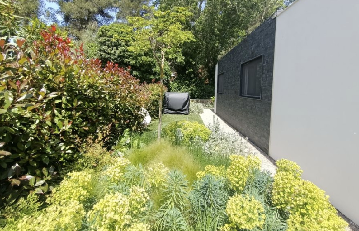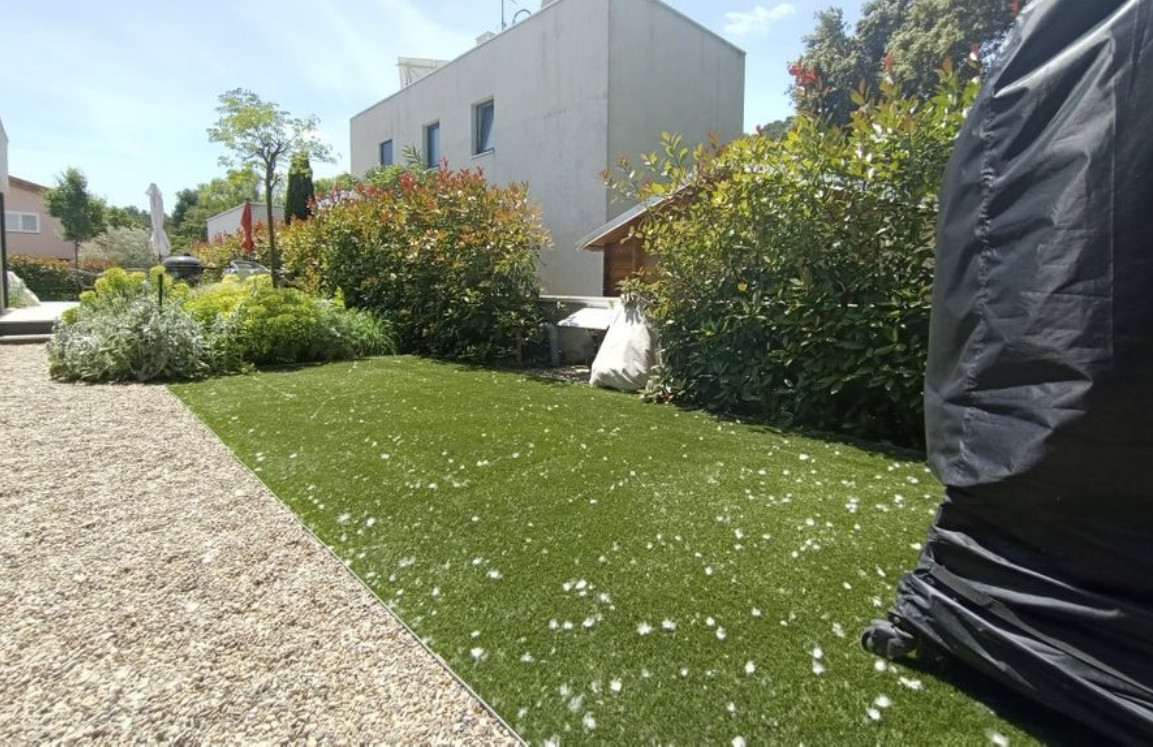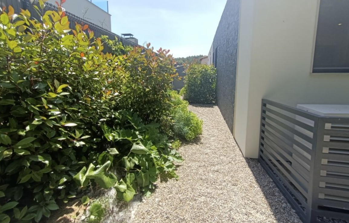 Расположен на абсолютно ровном участке площадью 614 м2 с великолепным садом, бассейном с морской водой, столетней вишней и многими другими деревьями и множеством растений.